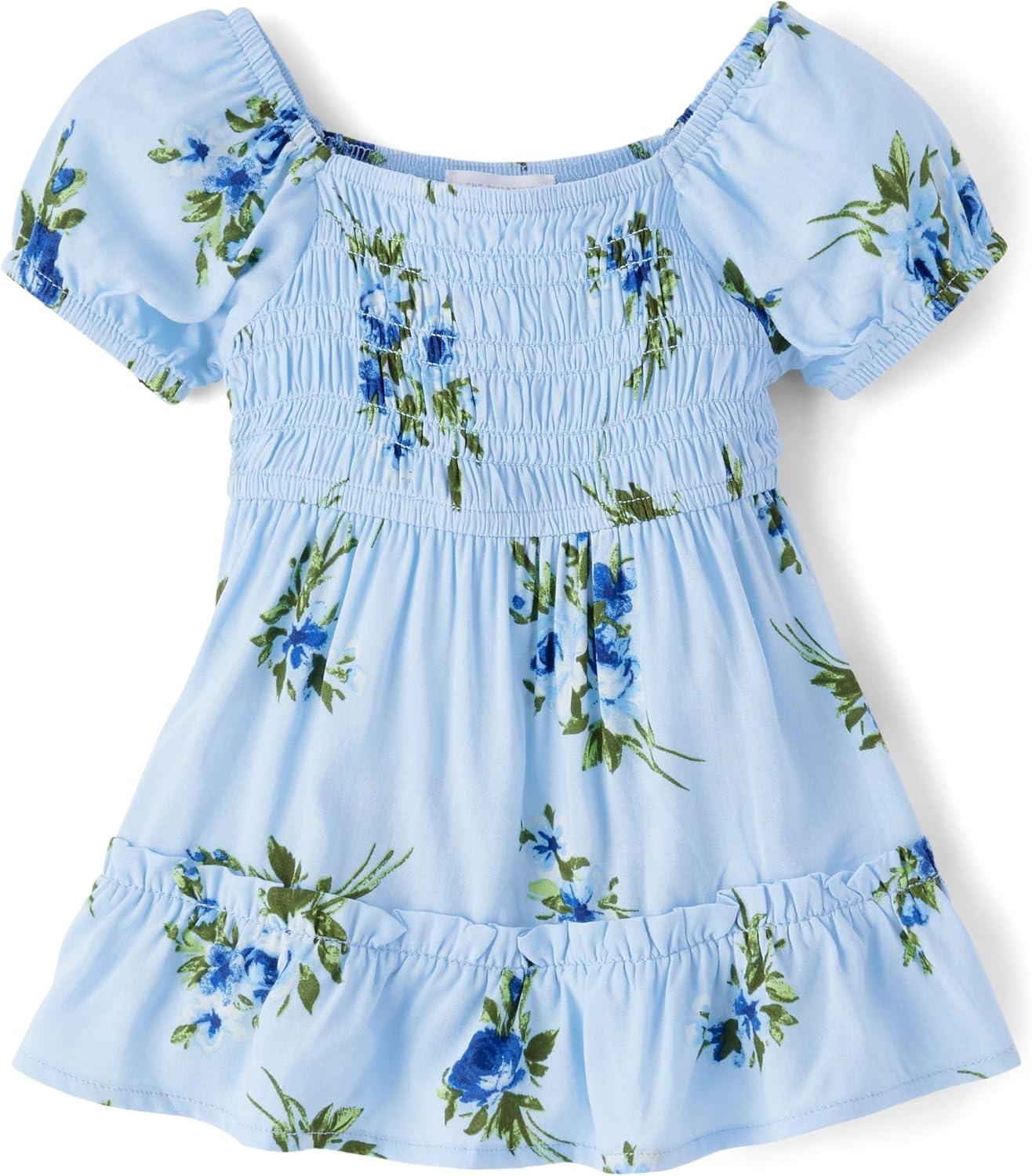 The Children’s Place Baby Girls’ and Newborn Casual Short Sleeve Dress with Diaper Cover(Renew Blue Floral)