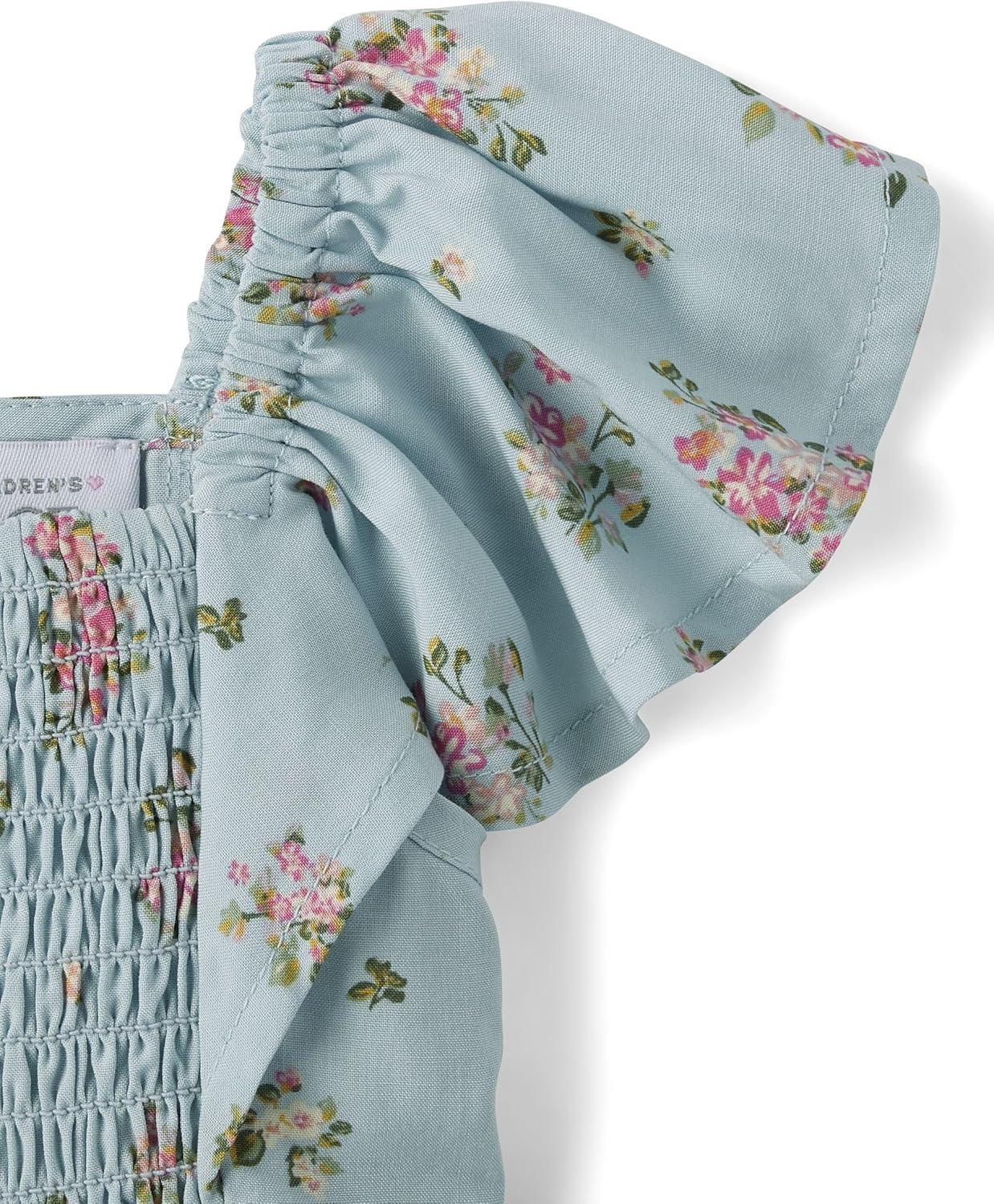 The Children’s Place Baby Girls’ and Newborn Short Sleeve Ruffle Dress(Dusky Blue)