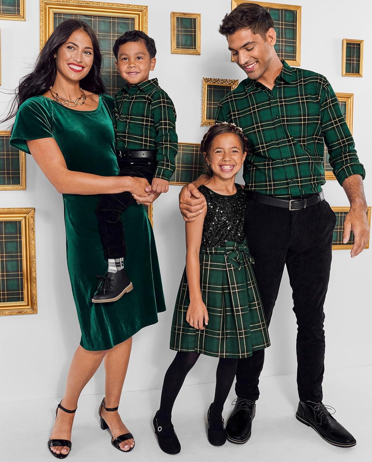 The Children’s Place baby-boys And Newborn Button Down Shirt and Pants, 2 Piece Outfit(Green Plaid Set)