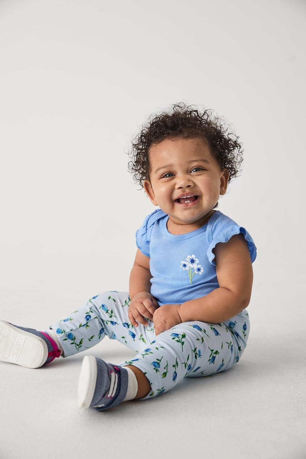 The Children’s Place Baby-Girls and Newborn Pull on Pants(Blue Floral/Blue Ruffle 2-pack)