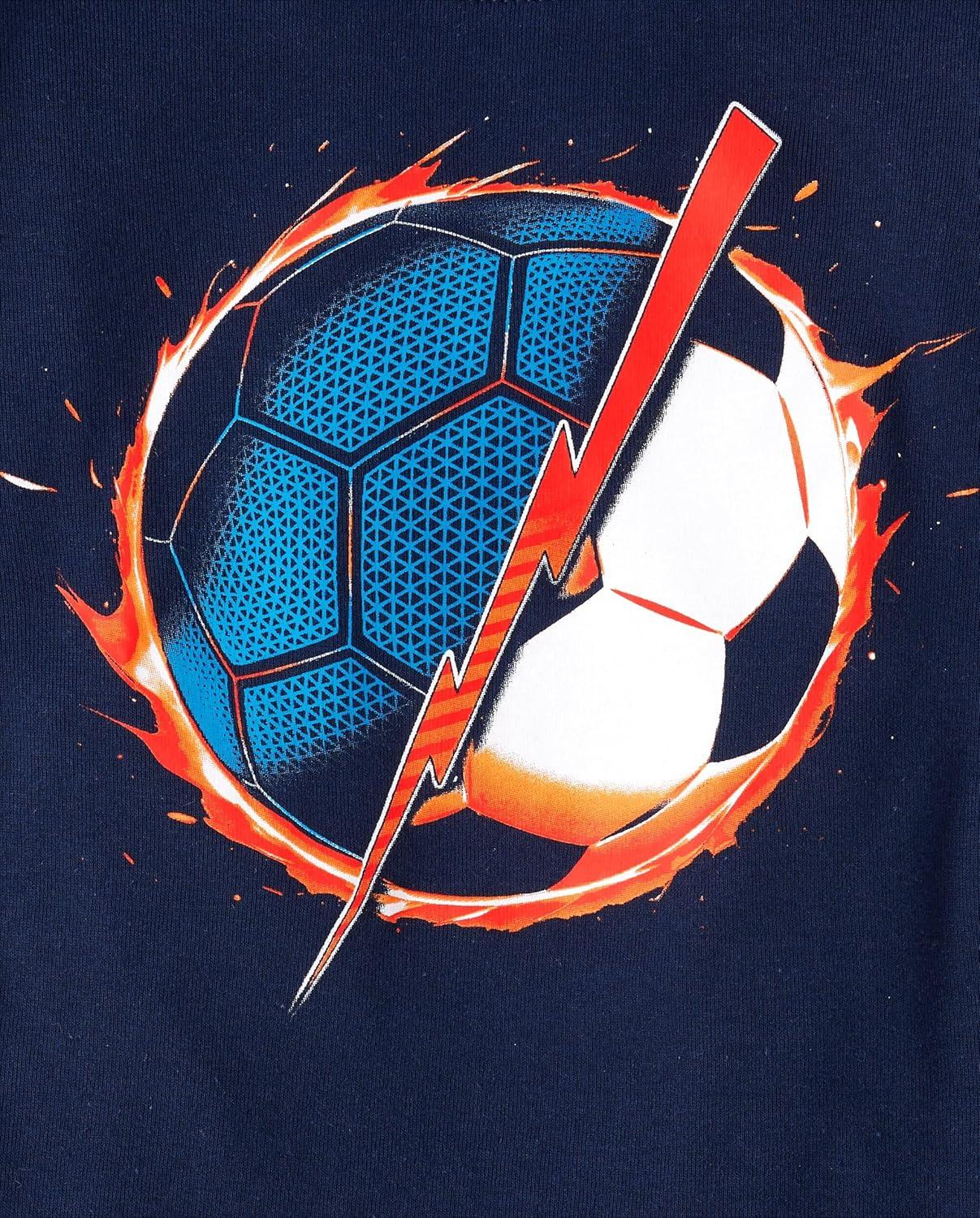 The Children’s Place Boys’ 100% Cotton Long Sleeve Top and Pants, 2 Piece Pajama Set(Soccer)