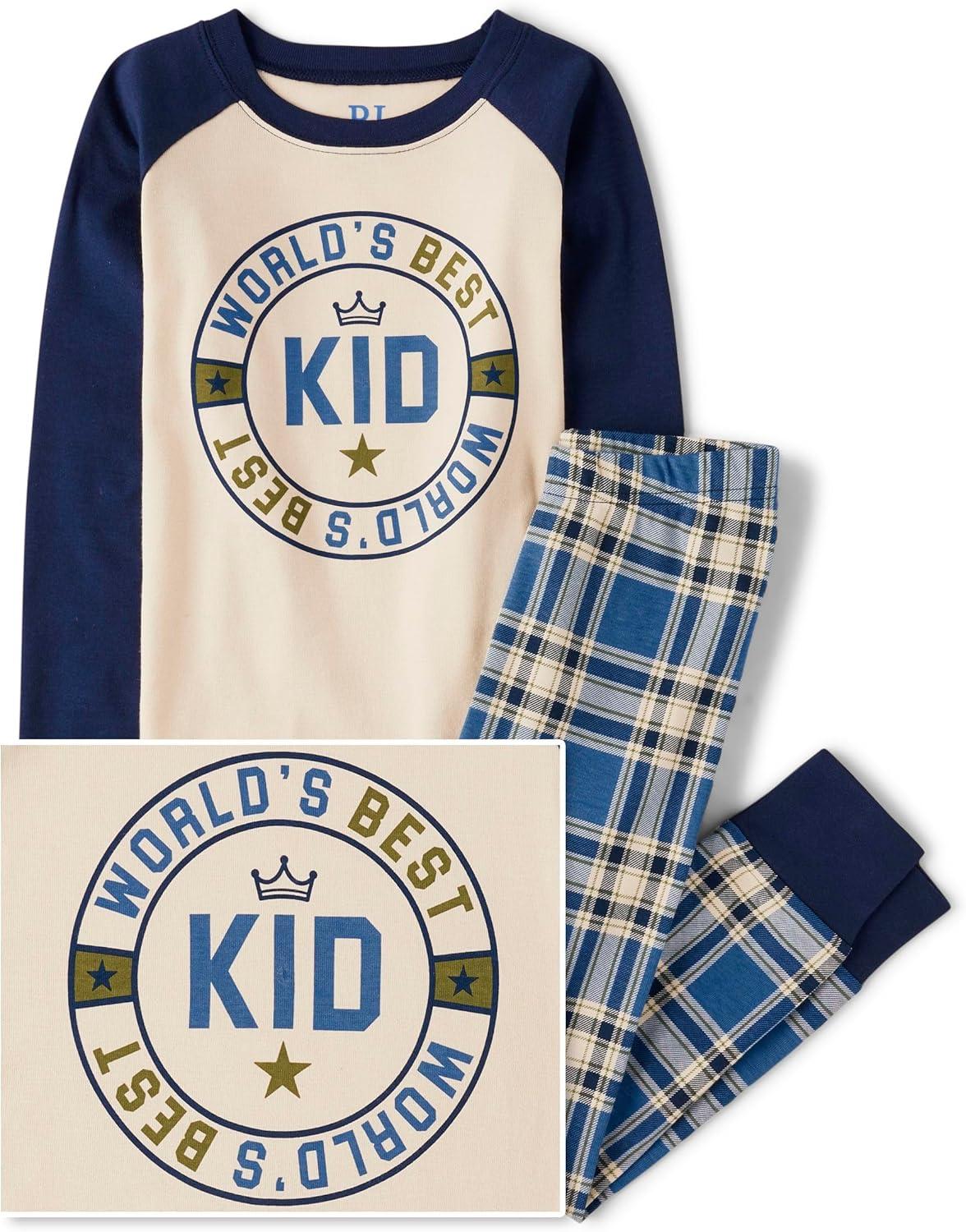 The Children’s Place Boys’ 100% Cotton Long Sleeve Top and Pants,2 Piece Pajama Set(Worlds Best Kid)