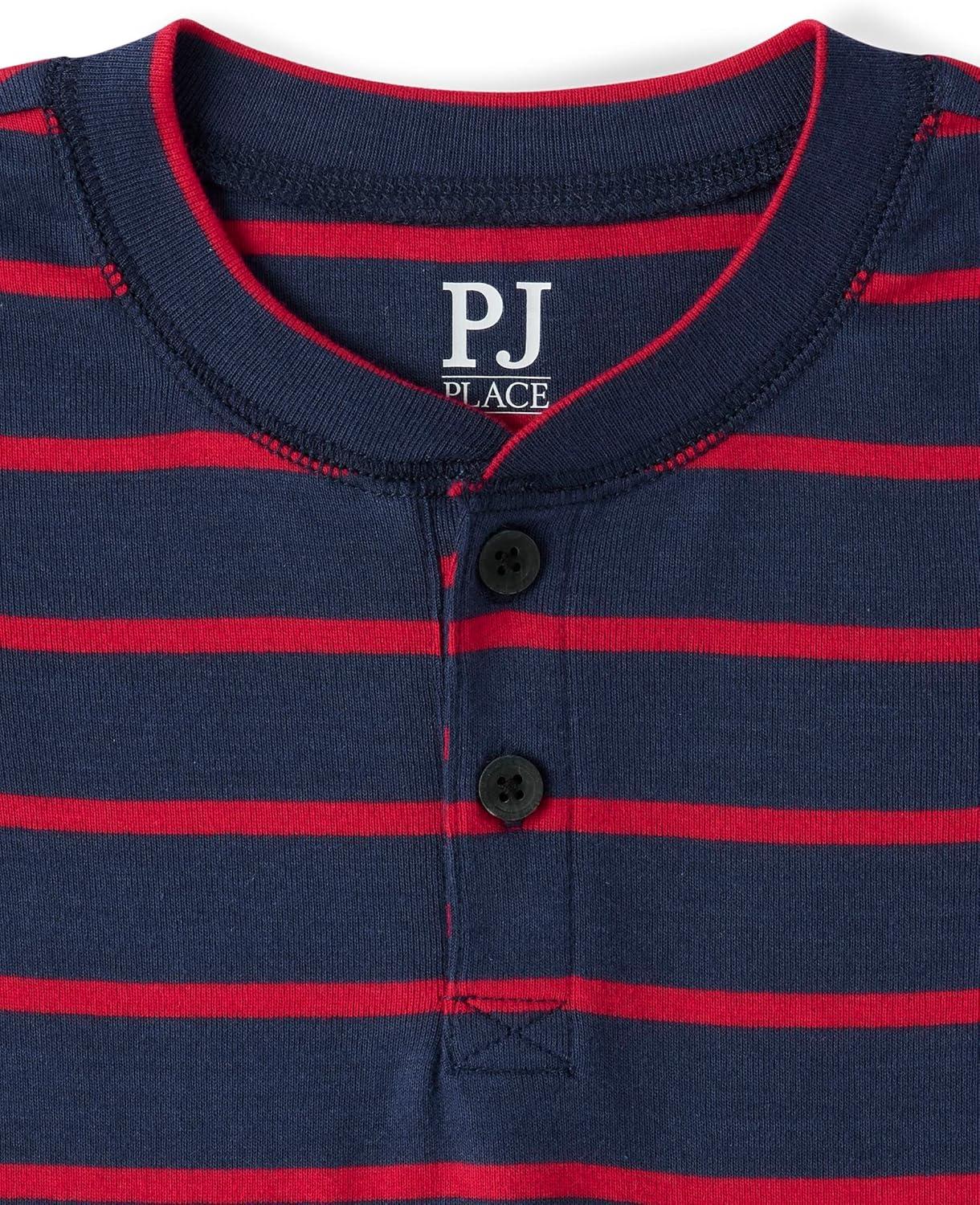 The Children’s Place Boys’ 100% Cotton Long Sleeve Top and Pants,2 Piece Pajama Set(Ruby Stripe Henley)