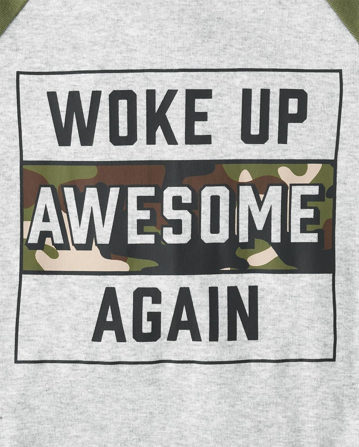 The Children’s Place Boys’ 100% Cotton Long Sleeve Top and Pants,2 Piece Pajama Set(Woke Up Awesome)