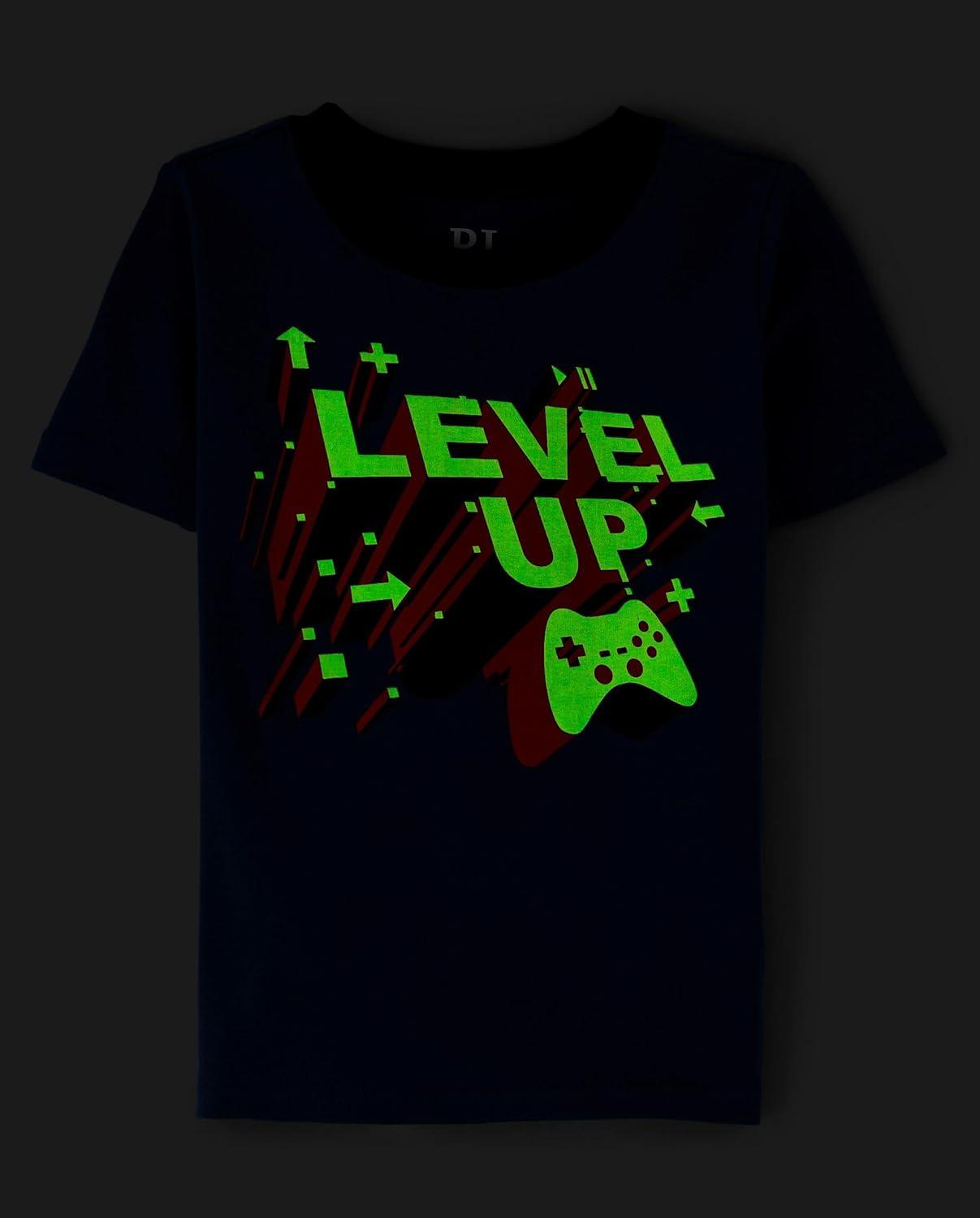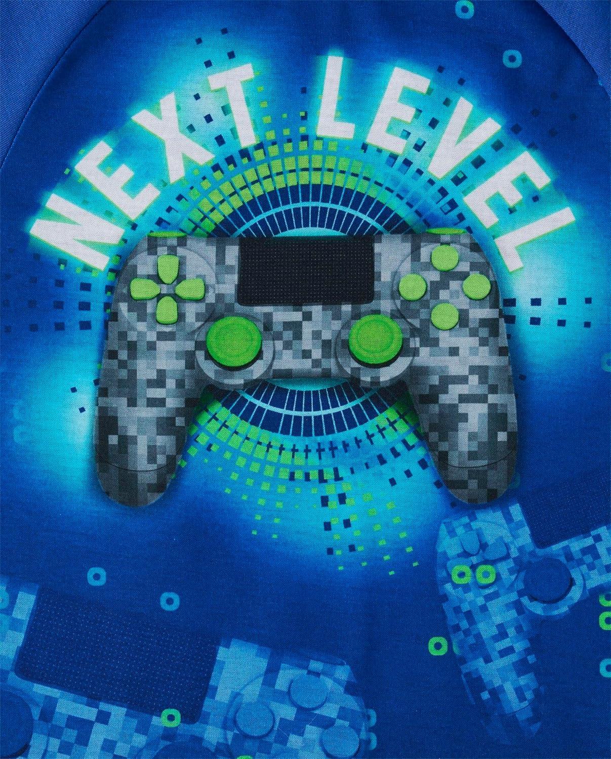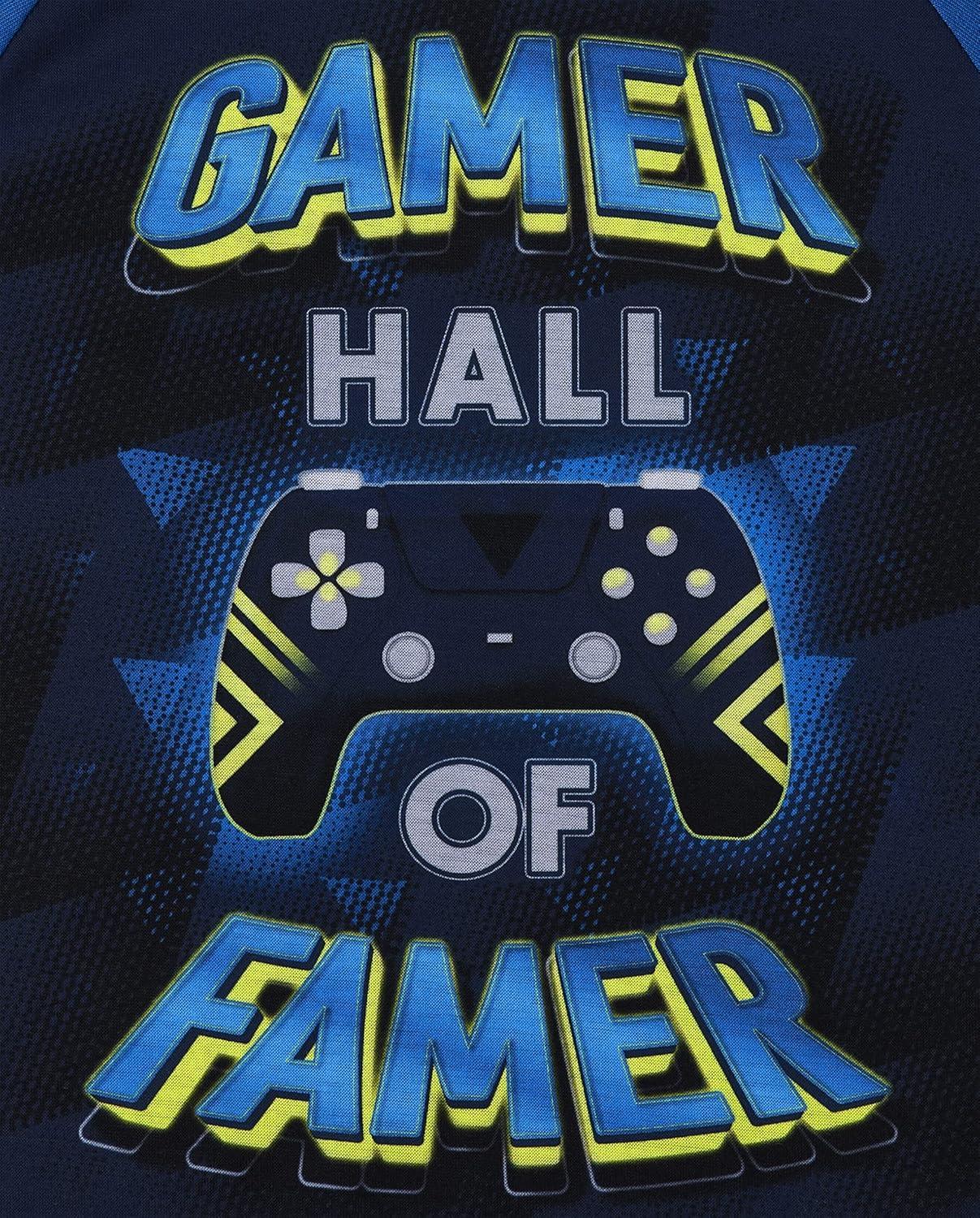 The Children’s Place Boys’ 100% Cotton Sleeve Top and Shorts 2 Piece Pajama Set(Level Up Gamer)