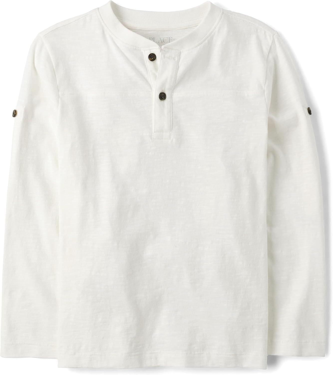 The Children’s Place Boys’ Long Sleeve Rolled Cuff Henley Shirt(Bunny’s Tail White)