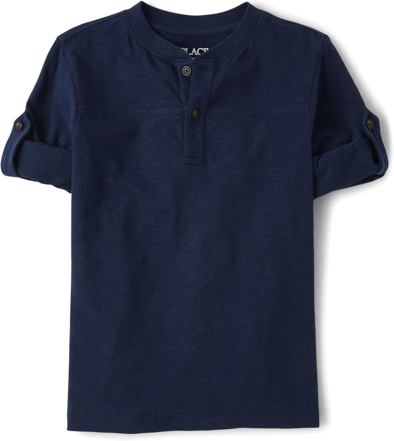 The Children’s Place Boys’ Long Sleeve Rolled Cuff Henley Shirt(Tidal Blue)