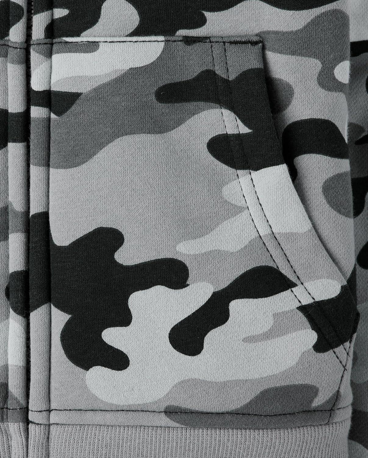 The Children’s Place Boys’ Long Sleeve, Sherpa Lined, Zip-Front Hoodie Sweatshirt(Misty Glen Camo)