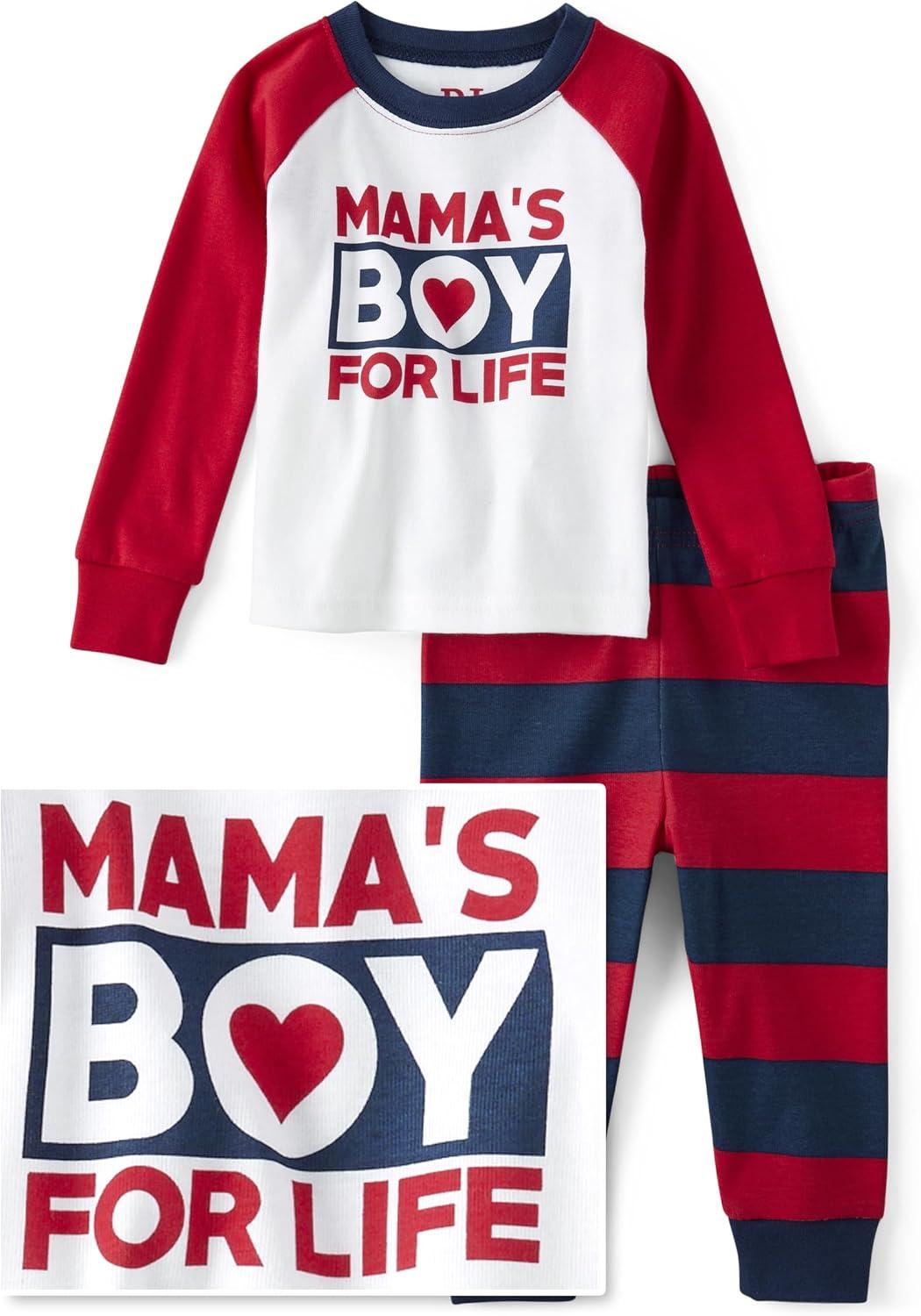 The Children’s Place baby-boys Long Sleeve Top and Pants Snug Fit 100% Cotton 2 Piece Pajama Sets(Ht Mist Mamas Boy)