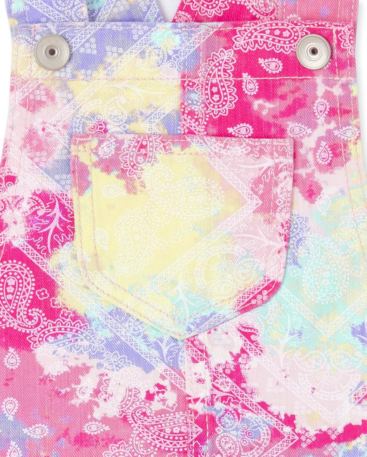 The Children’S Place Girls Denim Shortall Overalls(Bandana Tie Dye)