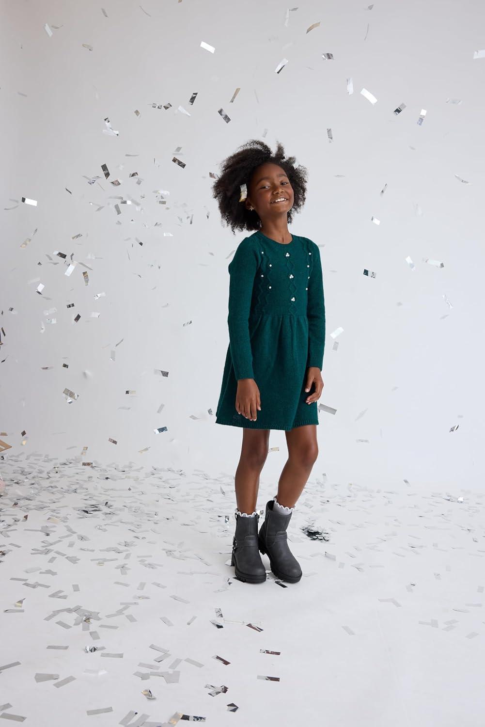 The Children’s Place Girls Puff Sleeve Dress, Long Sleeve(Beaded Spruceshad)
