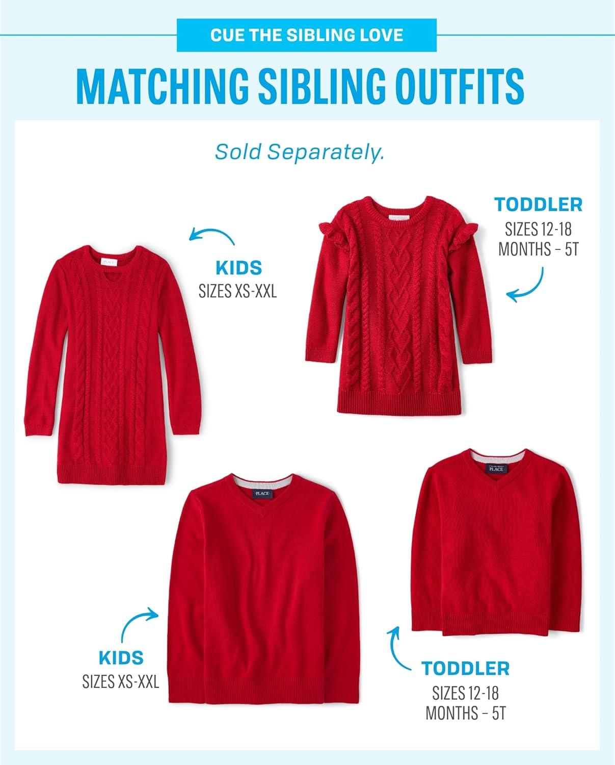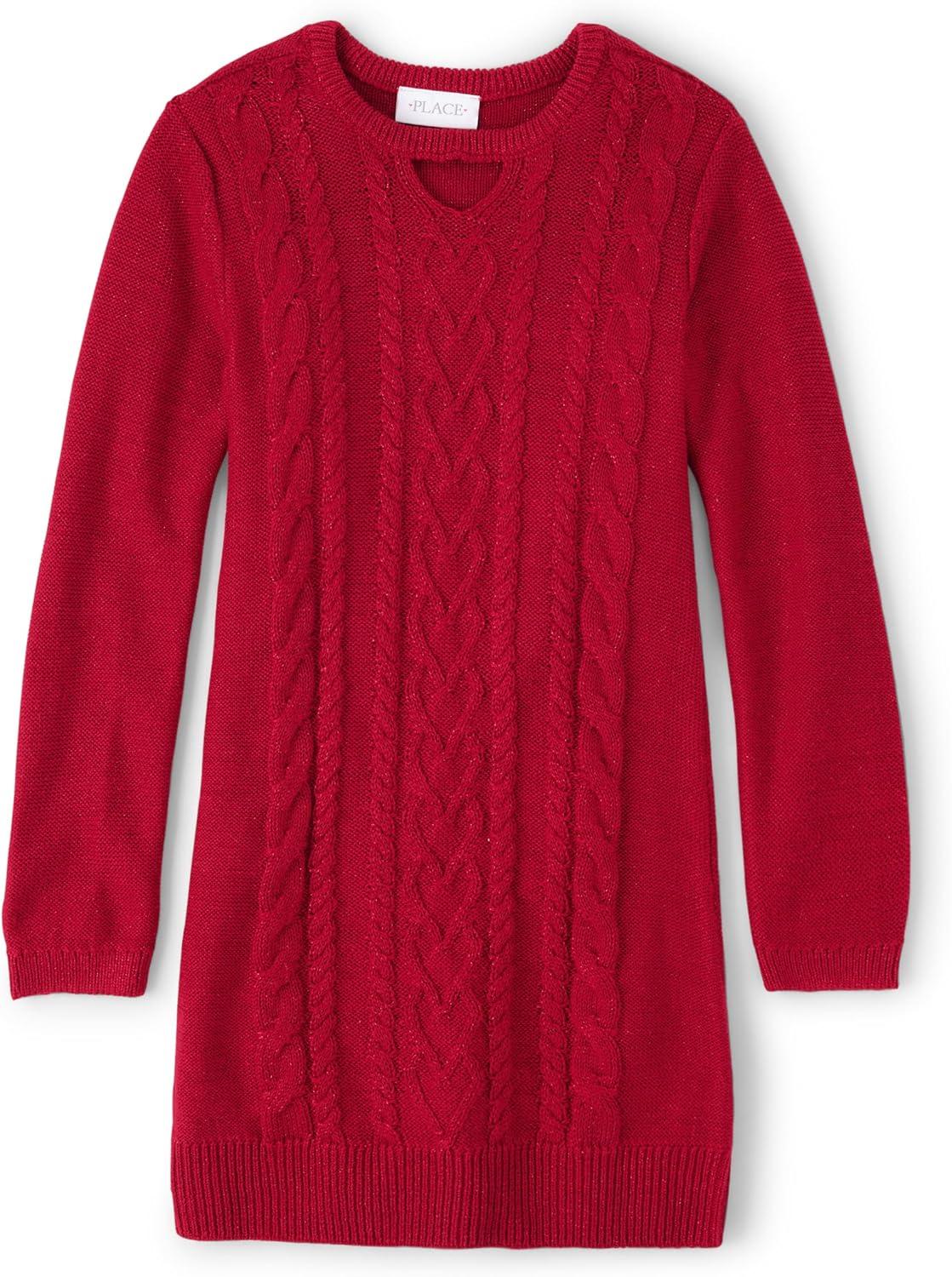 The Children’s Place Girls Puff Sleeve Dress, Long Sleeve(Cable Knit Red)