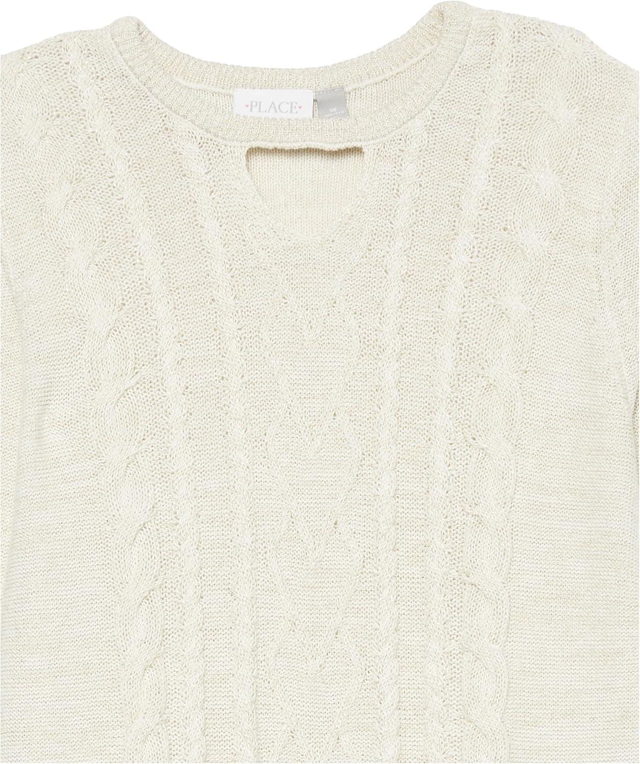 The Children’s Place Girls Puff Sleeve Dress, Long Sleeve(Cable Knit White)