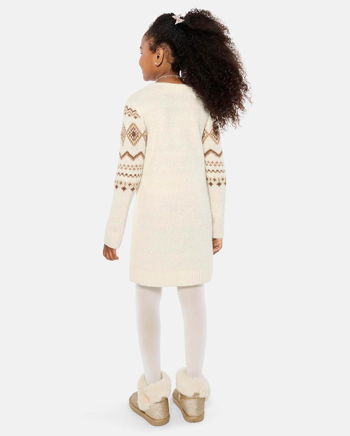 The Children’s Place Girls Puff Sleeve Dress, Long Sleeve(Cream Fairisle)