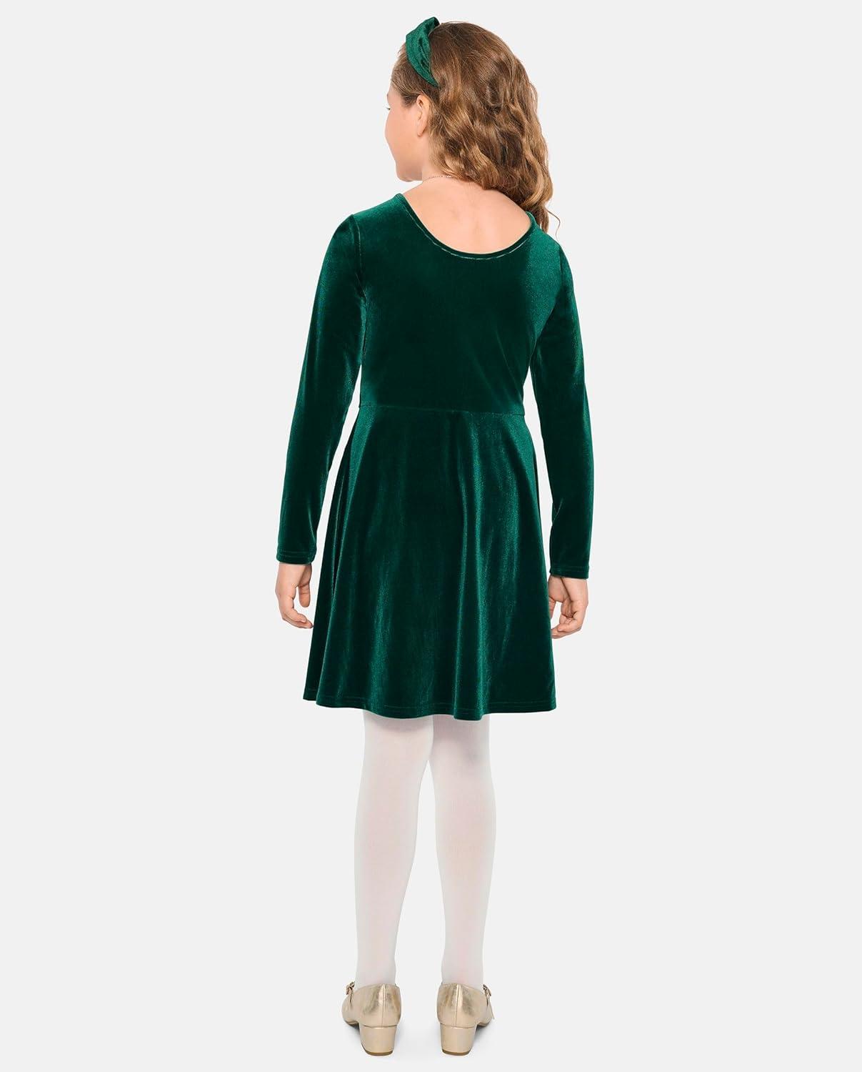 The Children’s Place Girls Printed Skater Dress, Long Sleeve(Green Velour)