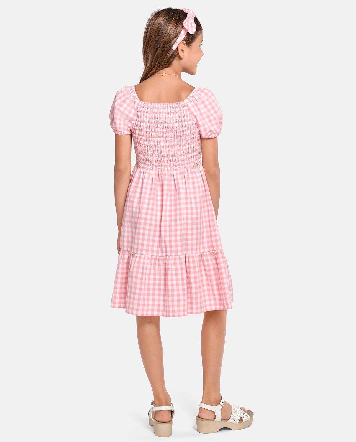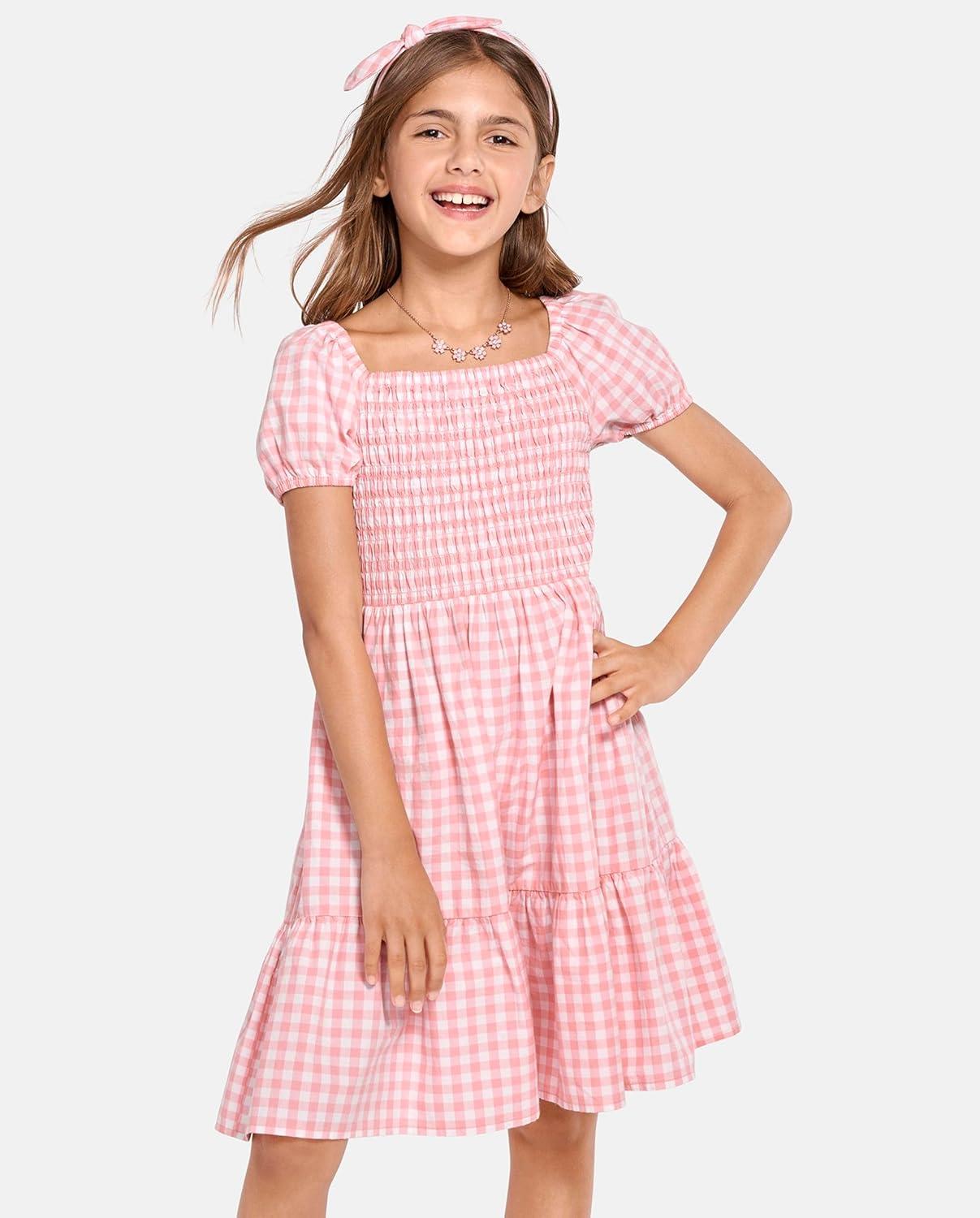 The Children’s Place girls Floral Smocked Babydoll Dress(Pink Gingham Puff Sleeve)