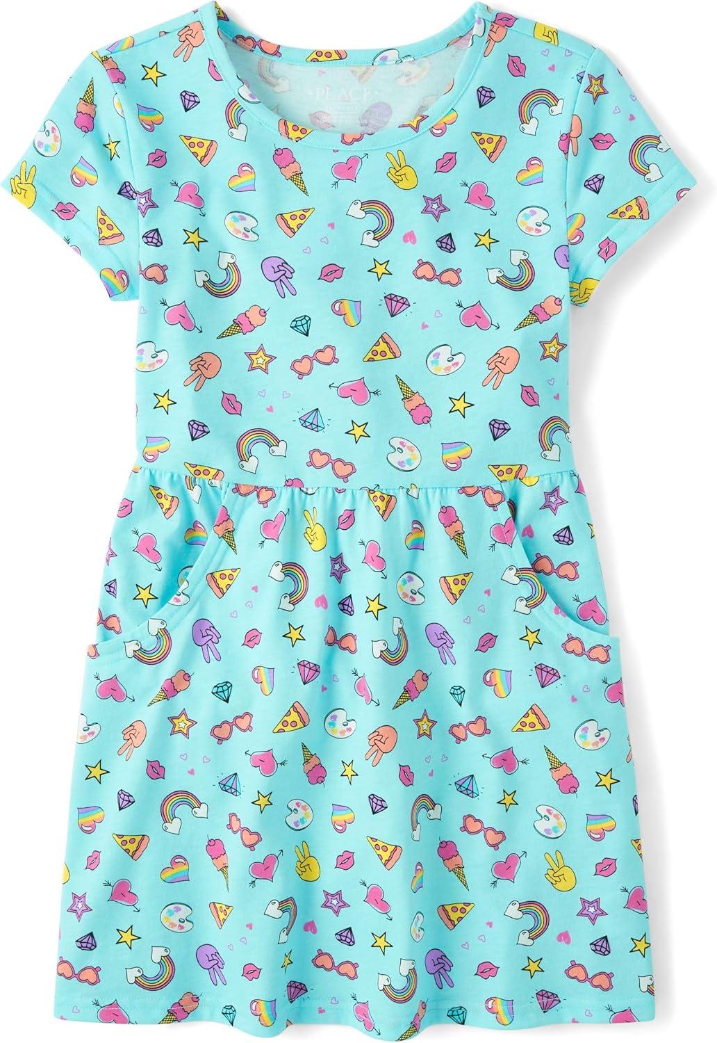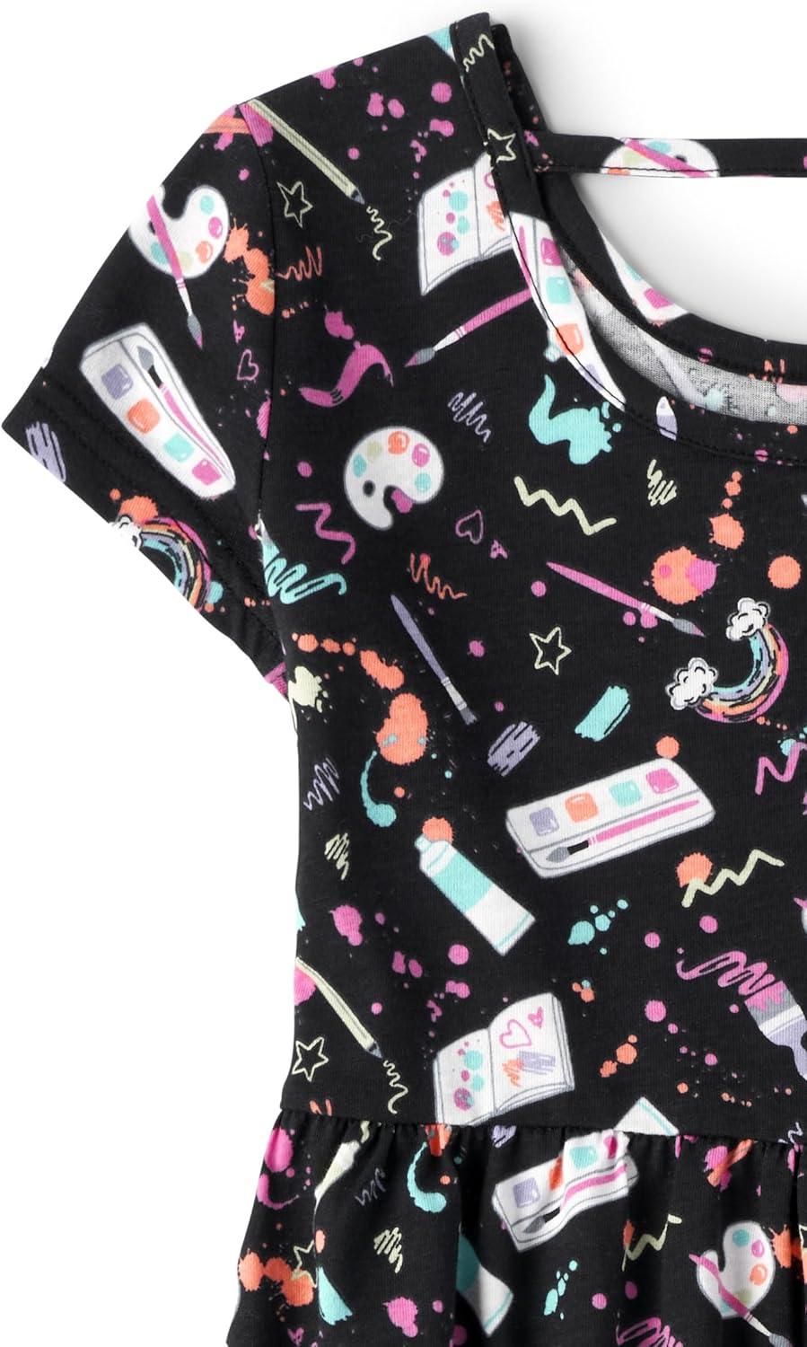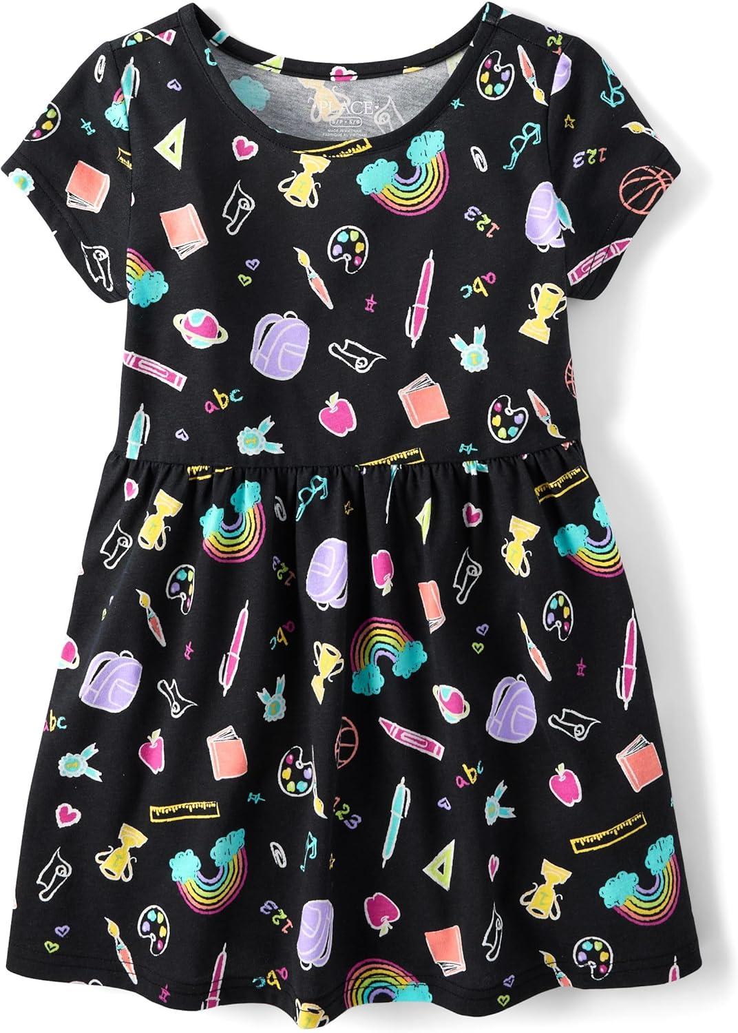 The Children’s Place Girls’ Plaid Stretch Jacquard Short Sleeve Dress(Black Dot/Unicorn 2 Pack)