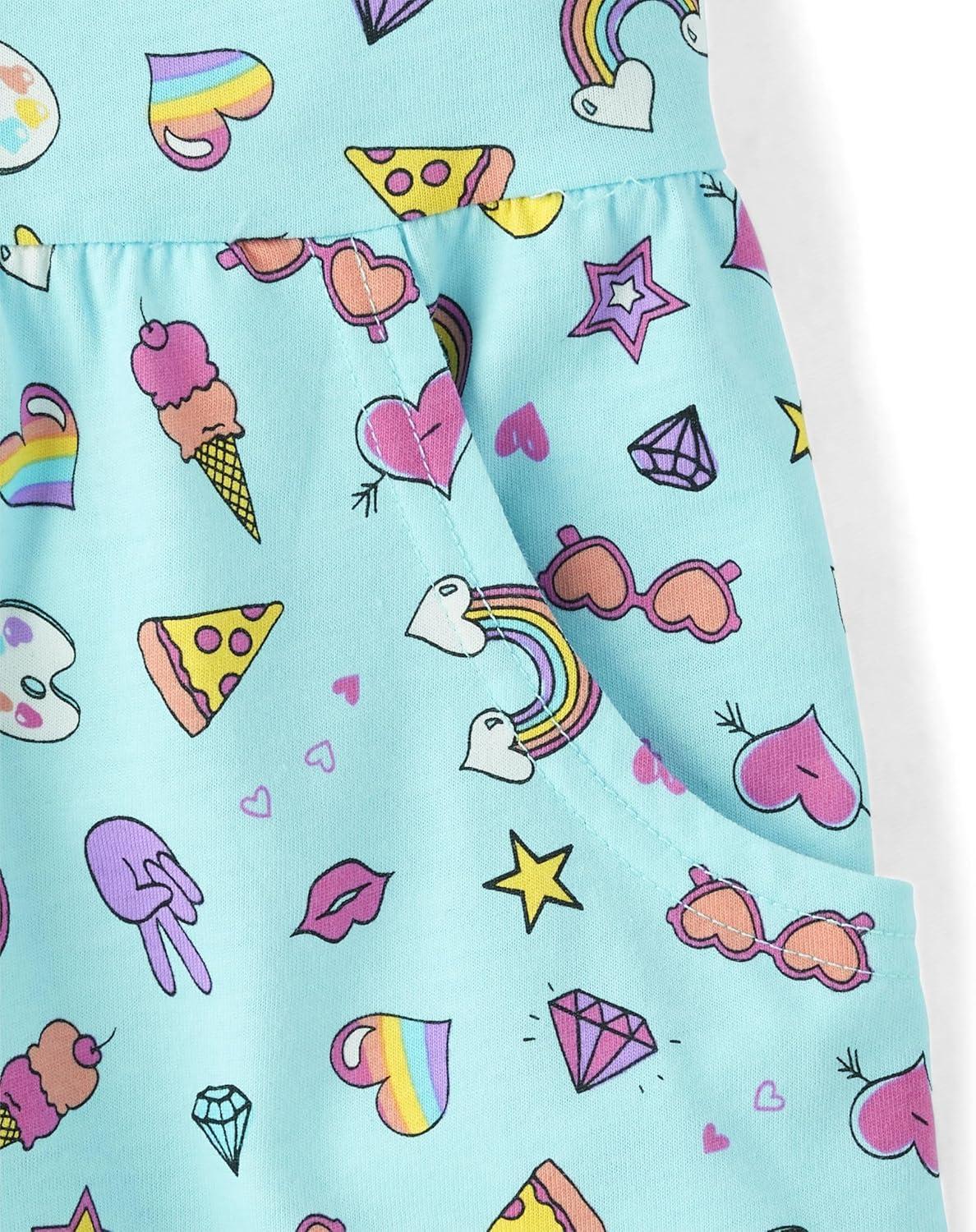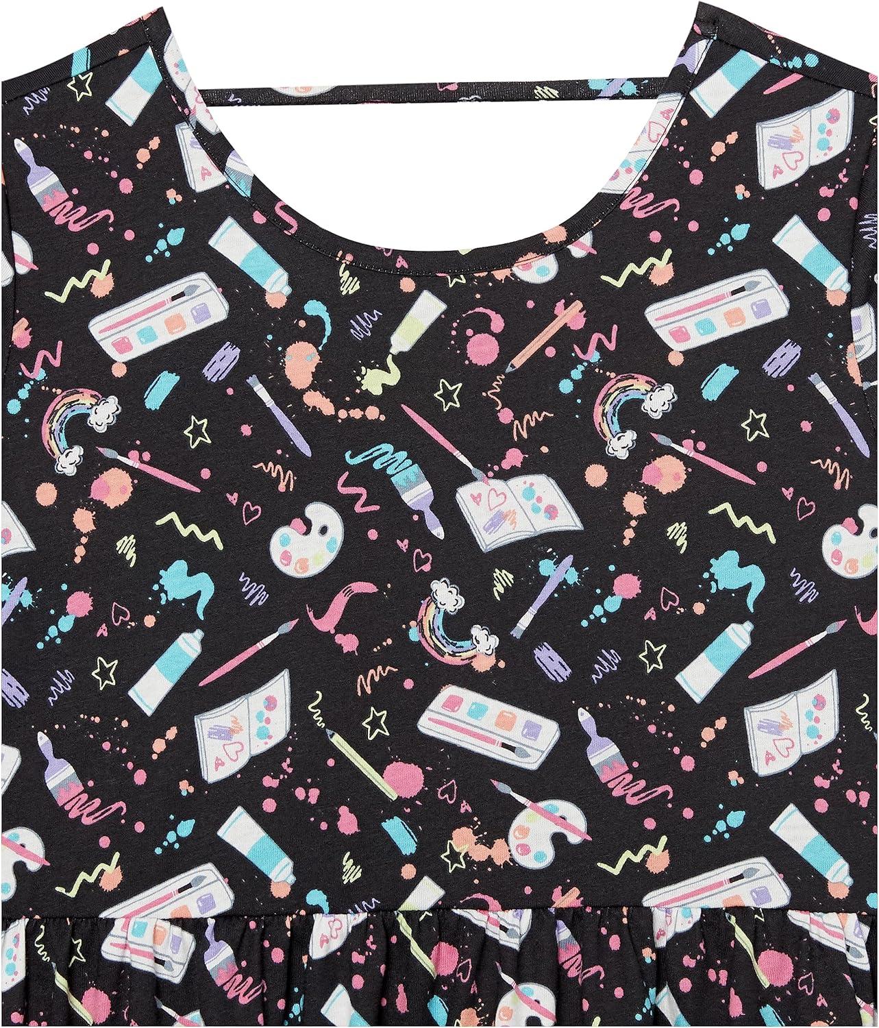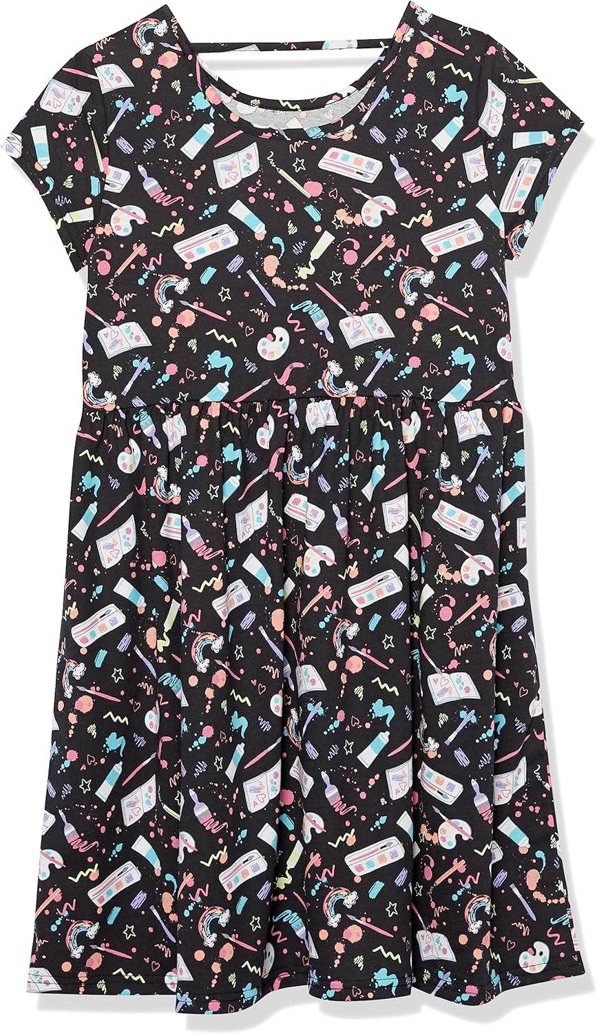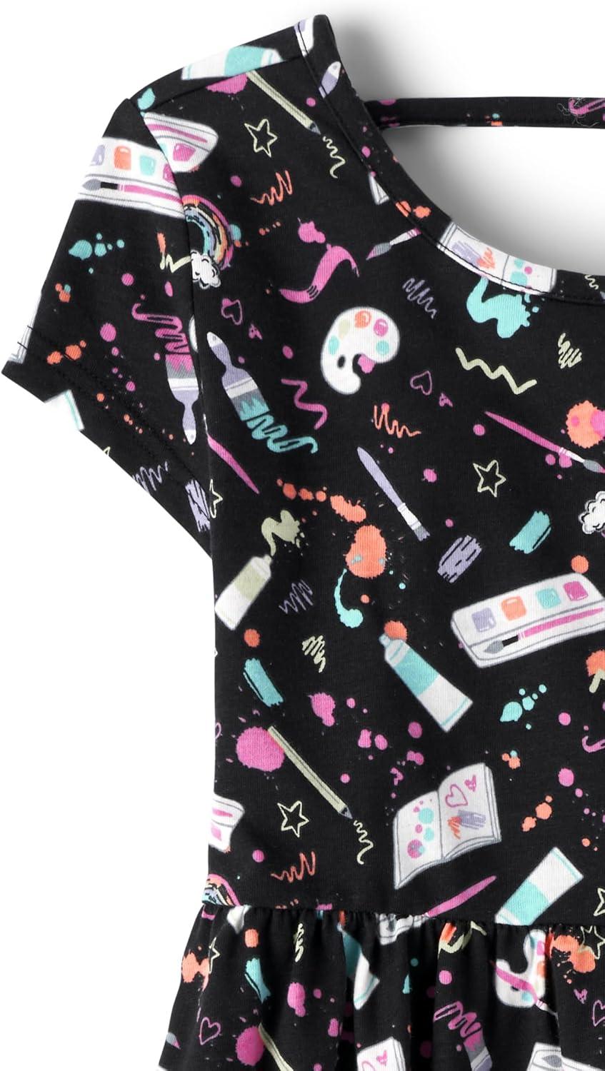 The Children’s Place Girls’ Plaid Stretch Jacquard Short Sleeve Dress(Black Dot/Unicorn 2 Pack)