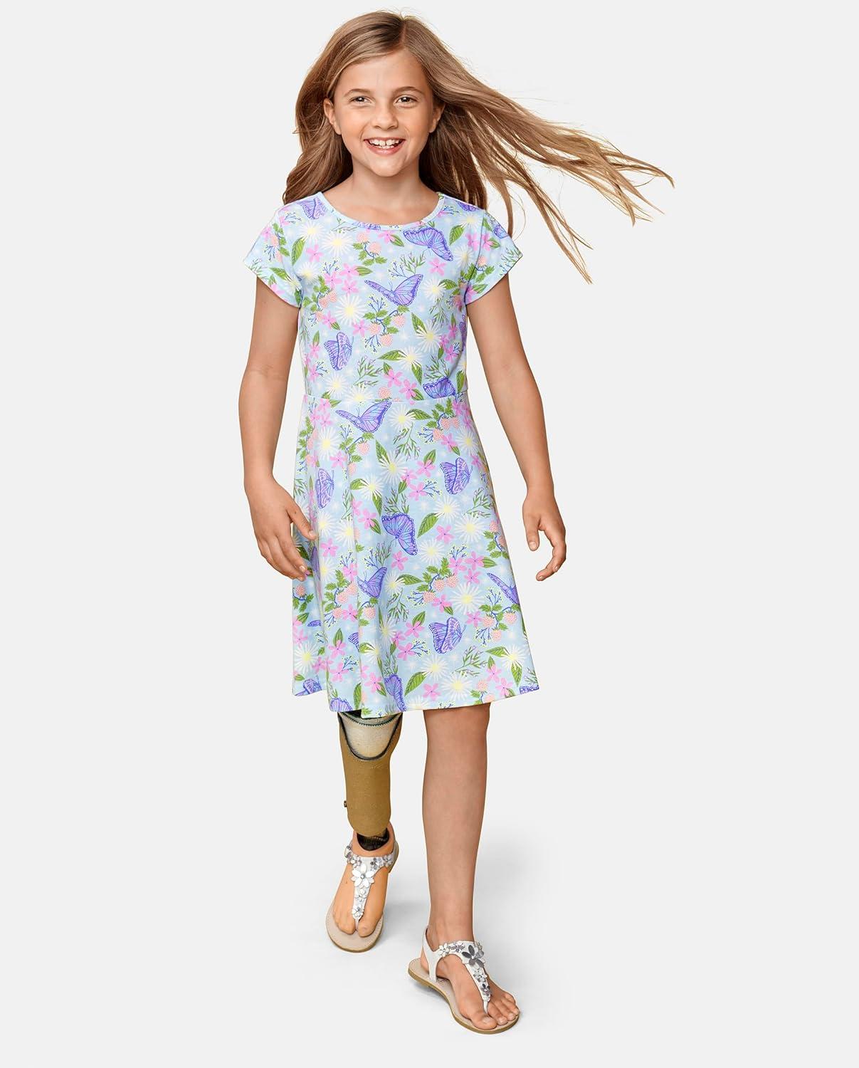 The Children’s Place Girls’ Plaid Stretch Jacquard Short Sleeve Dress(Butterfly Garden)