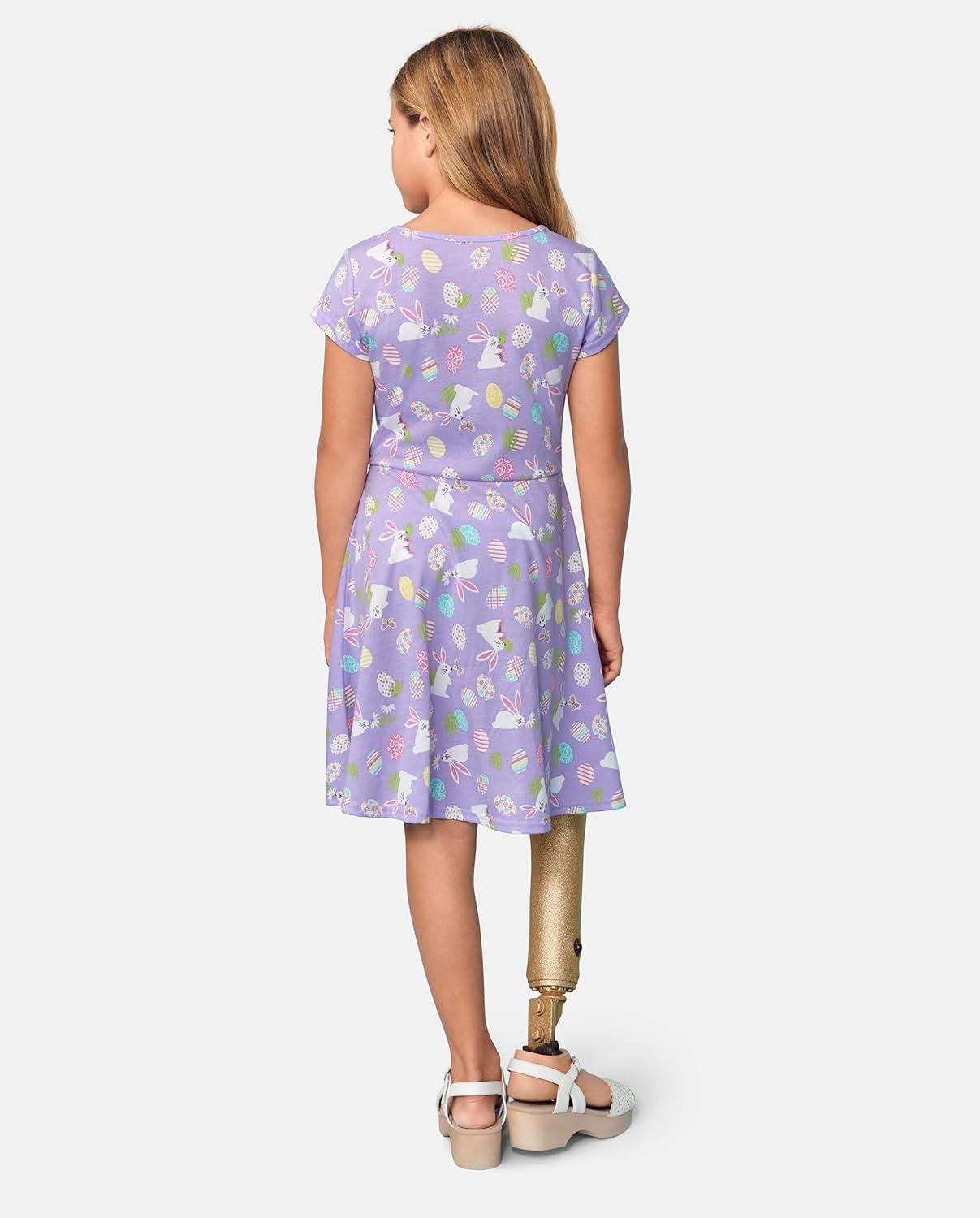 The Children’s Place Girls’ Plaid Stretch Jacquard Short Sleeve Dress(Easter Bunnies and Eggs)