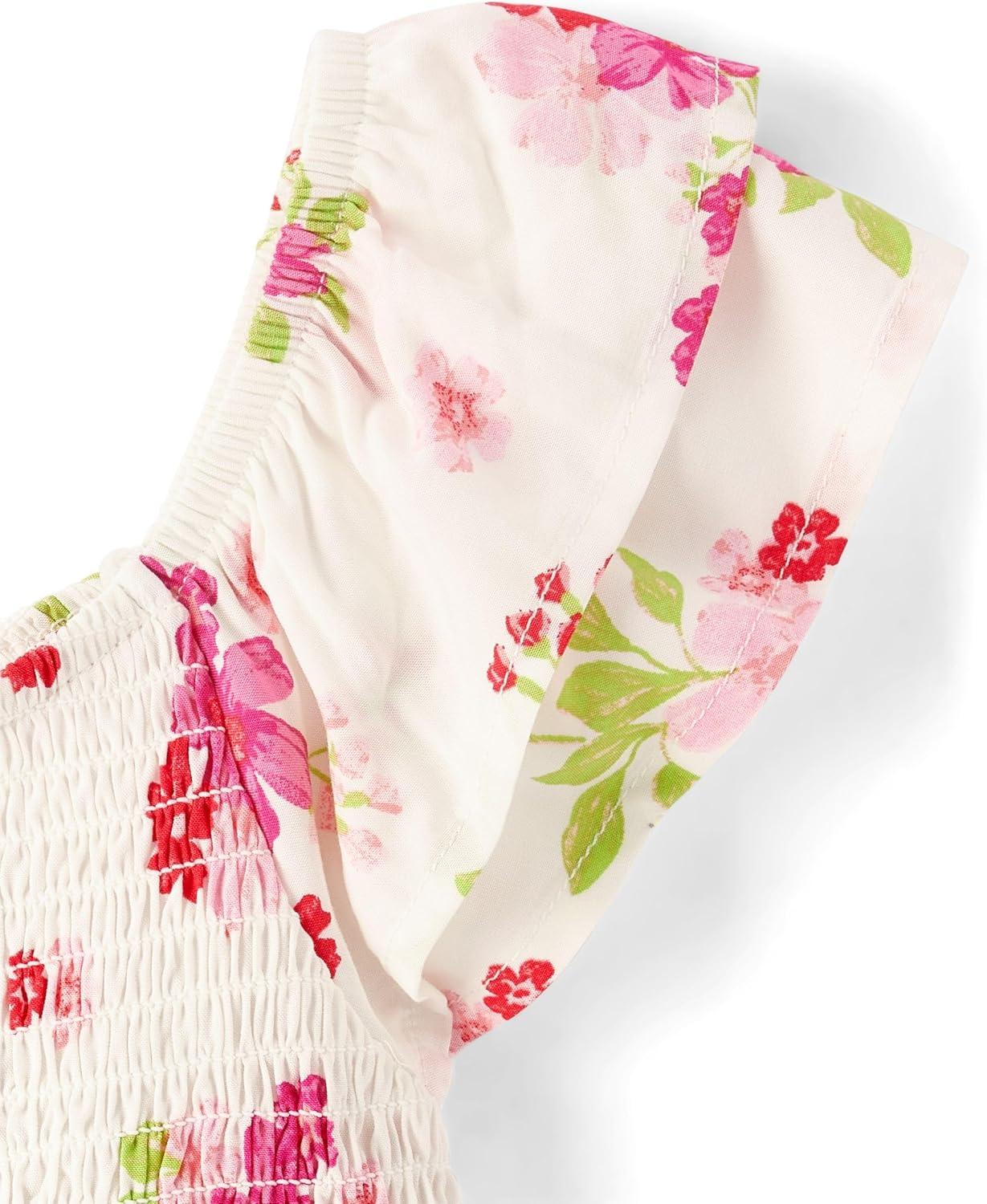 The Children’s Place girls Smocked Skirt With Shorts, Romper(Simply White Floral)