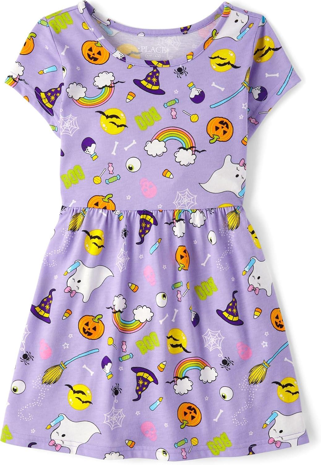 The Children’s Place Girls’ Short Sleeve Dressy Dress(Pink School Doodle)