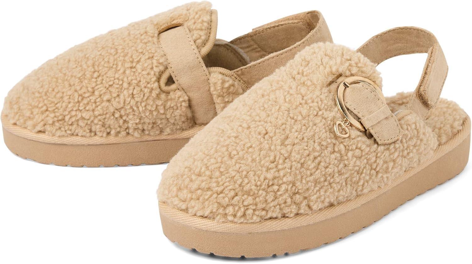 The Children’s Place girls Girls Indoor/Outdoor Comfy Slip on Platform Shoes, Faux Fur Lined(Tan)