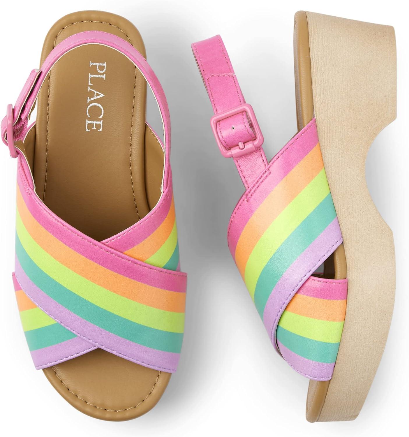 The Children’s Place girls Girls Open Toe Low Heel Clog Sandals(Rainbow Multi)