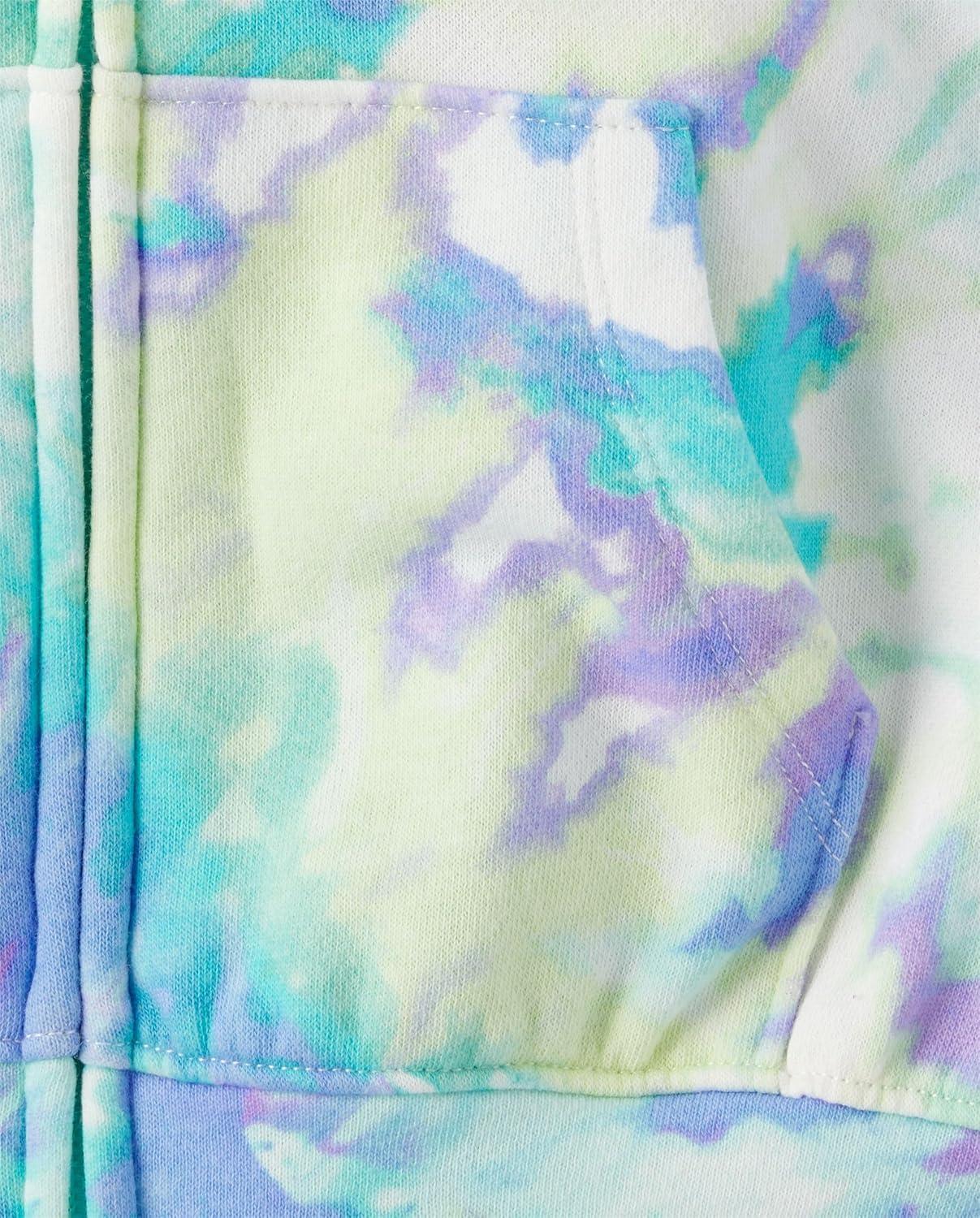• The Children’s Place girls Long Sleeve Hooded Fleece Full Zip Up(Green Glow Tie Dye)