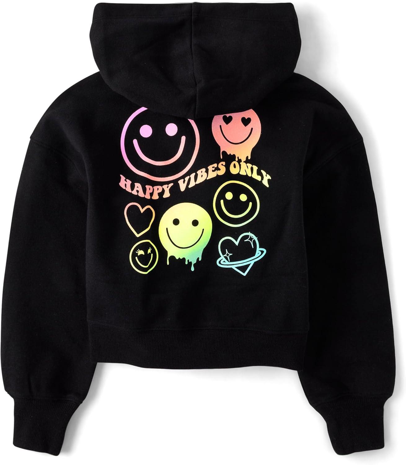 The Children’s Place girls Long Sleeve Hooded Fleece Full Zip Up(Happy Vibes)