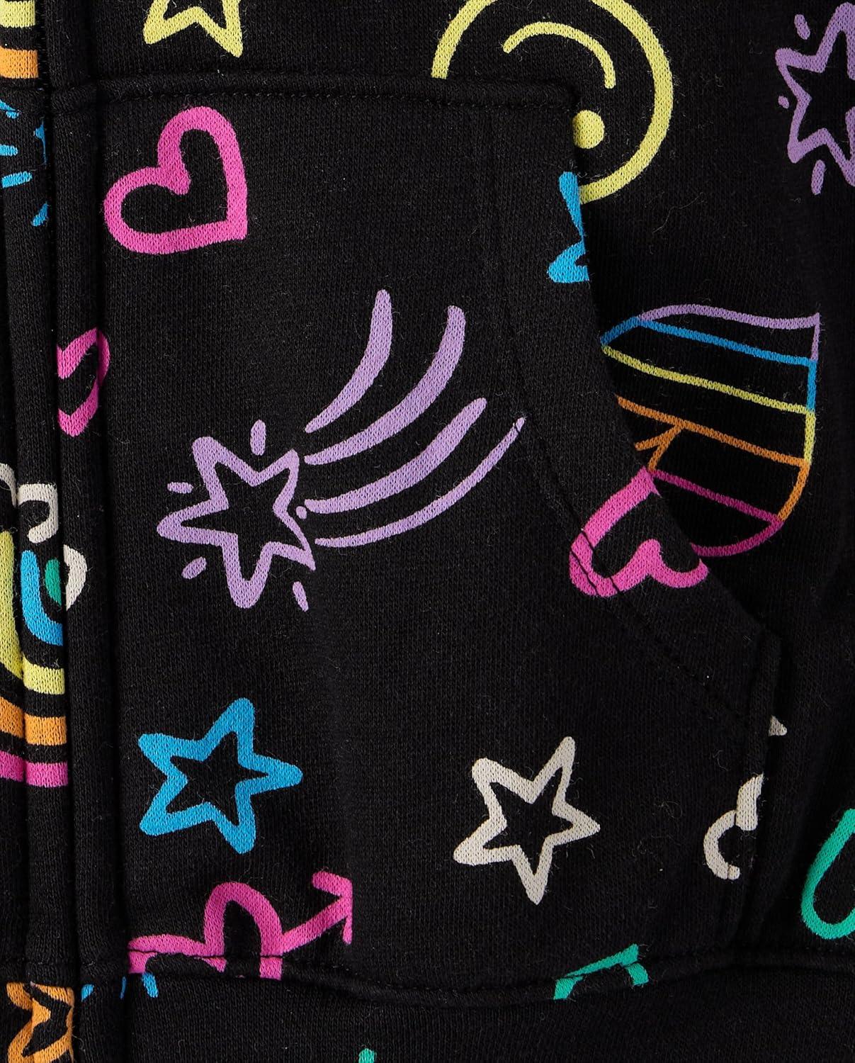 The Children’s Place girls Long Sleeve Hooded Fleece Full Zip Up(Rainbow Doodle)