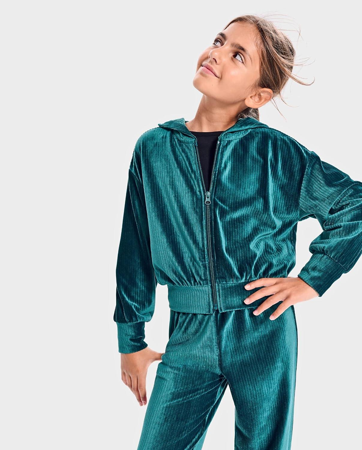 The Children’s Place girls Long Sleeve Hooded Fleece Full Zip Up(Rainforest Velour Rib)