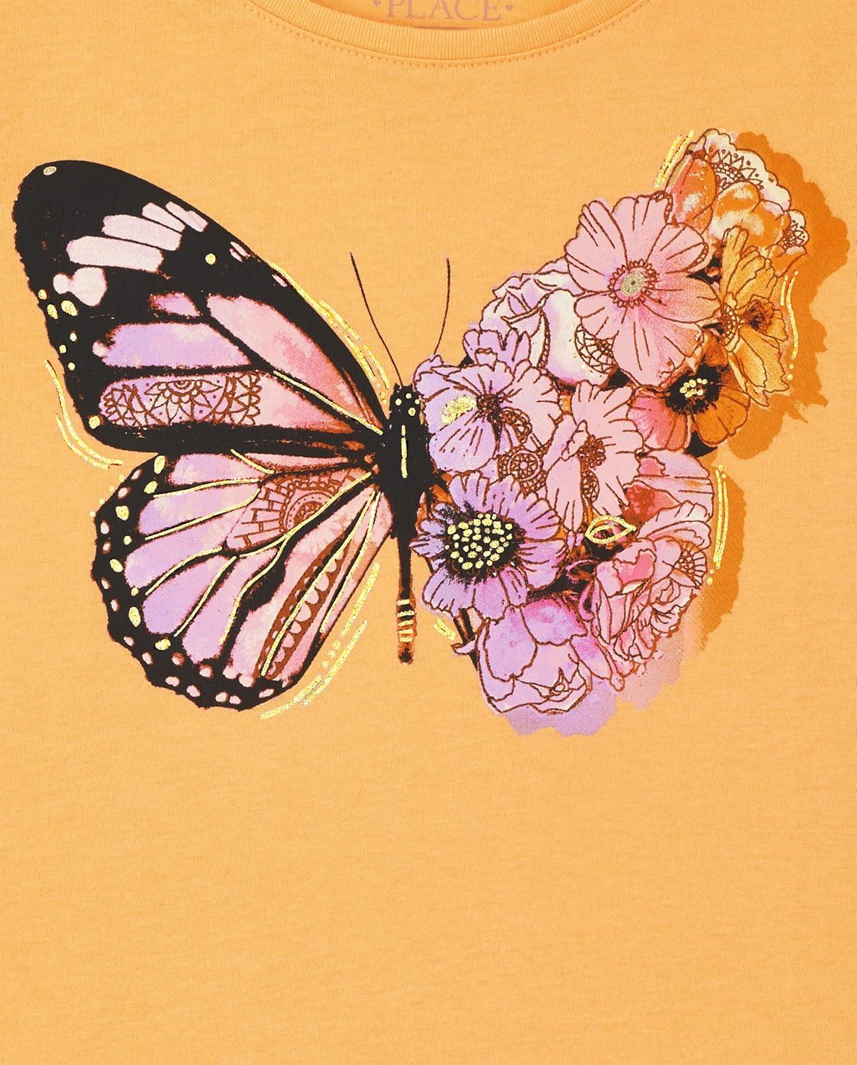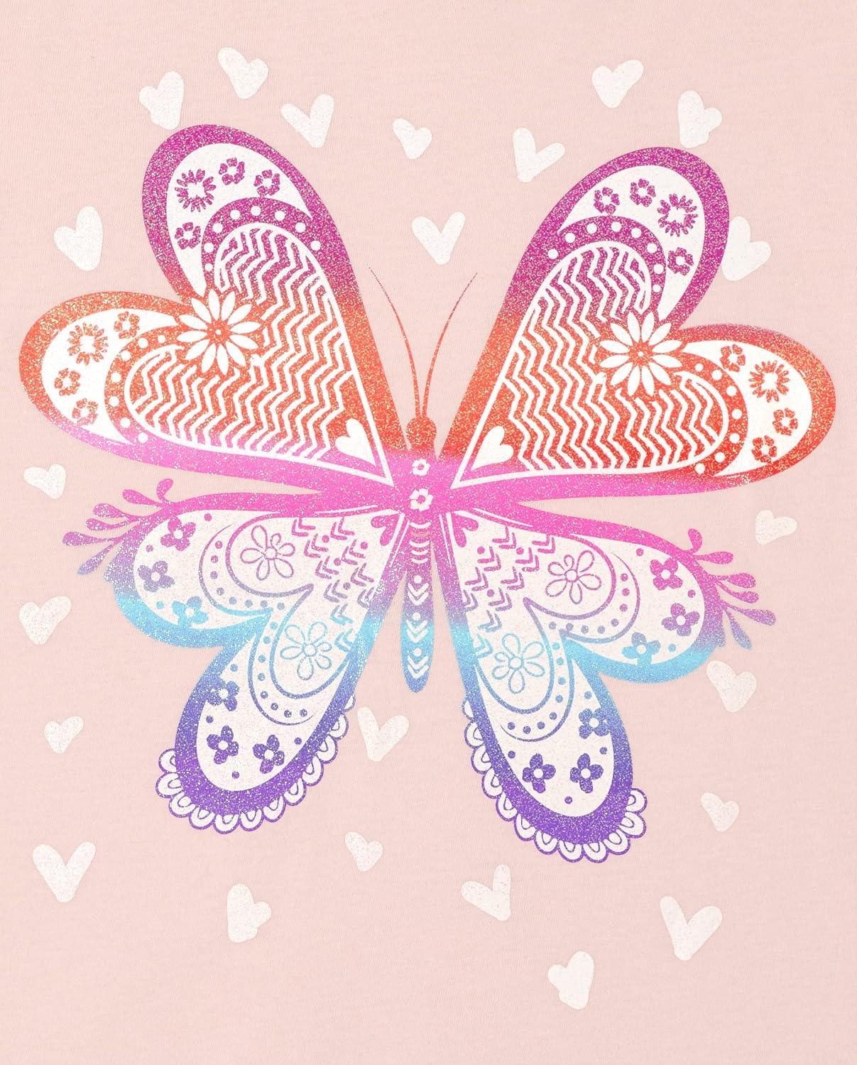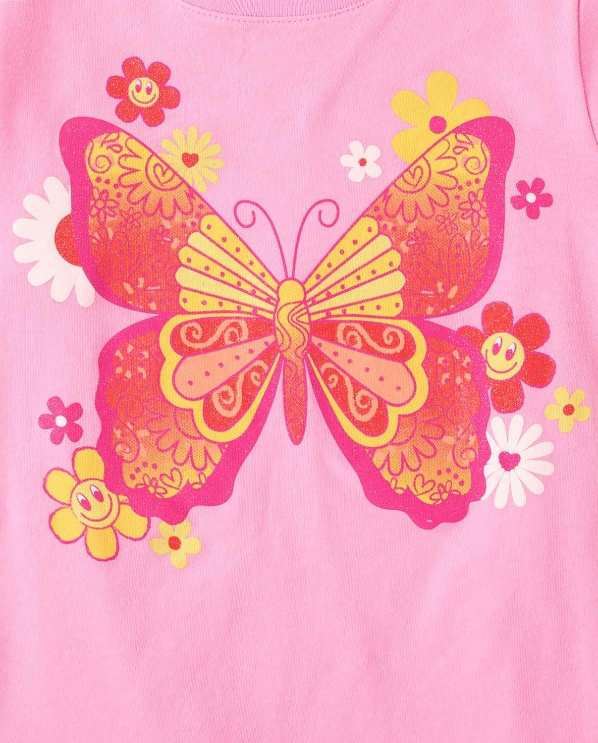 The Children’s Place Girls Unicorns,Butterfly Short Sleeve Graphic T-Shirts,3 Pack(Butterfly/Butterfly Hearts/Rainbows)