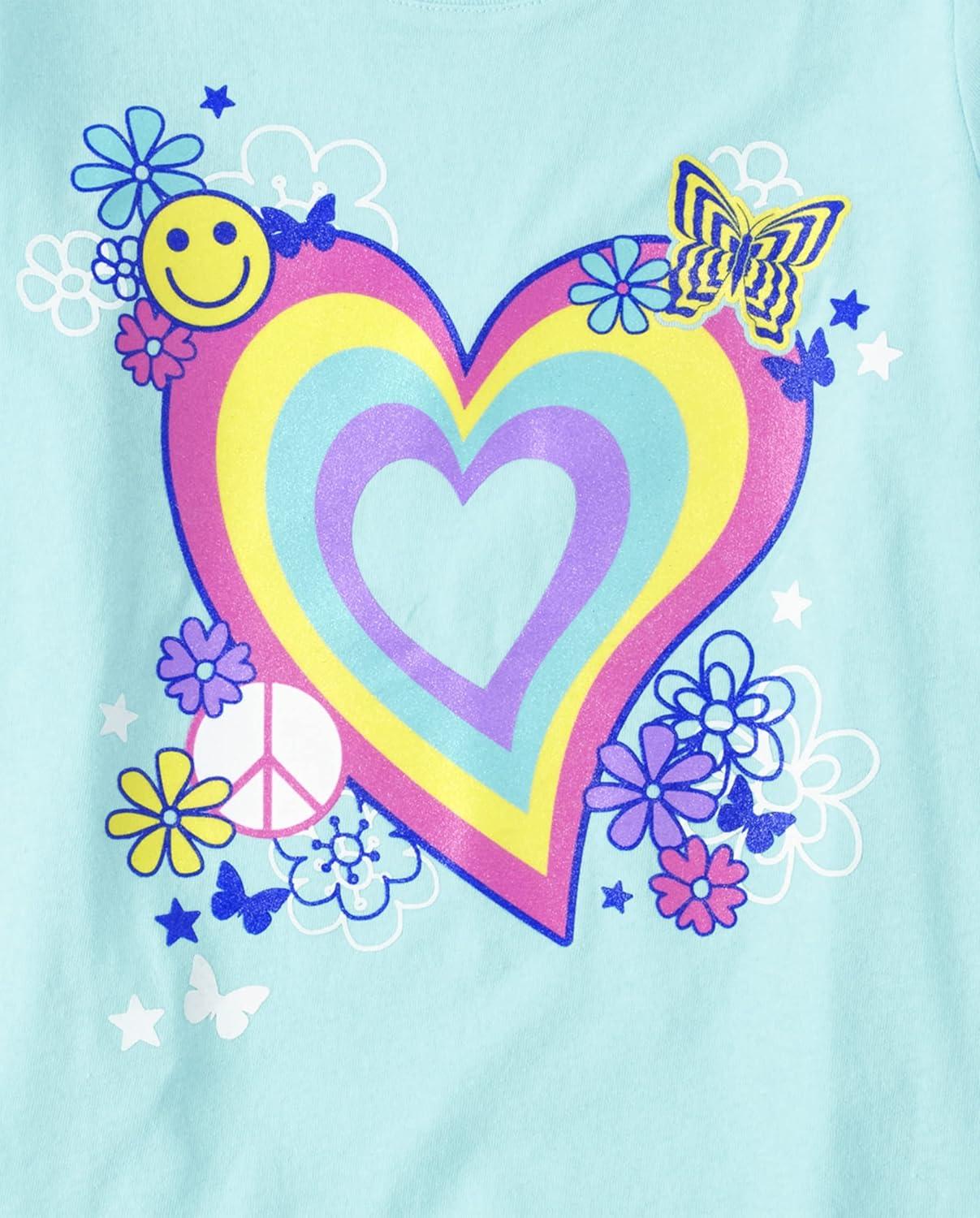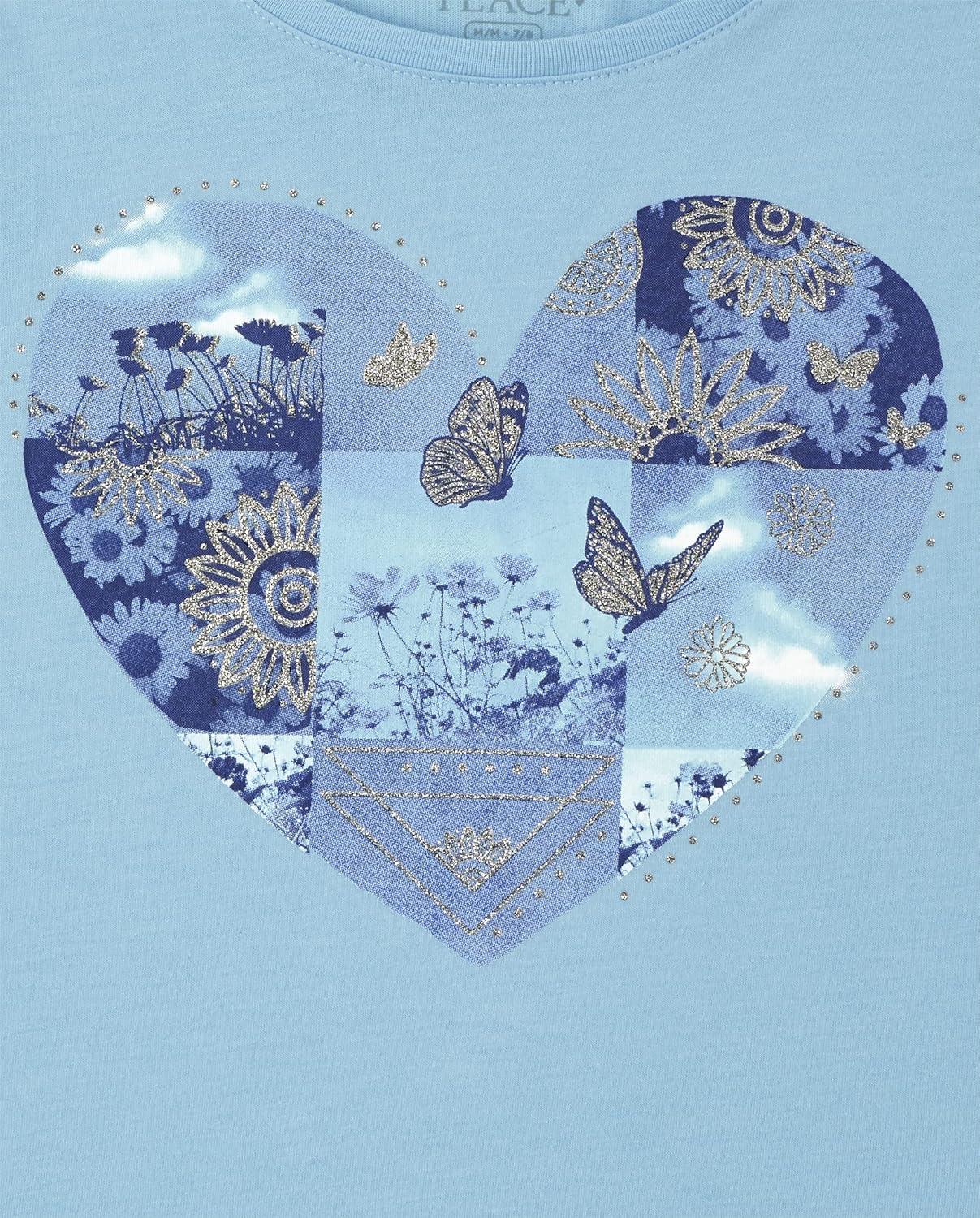 The Children’s Place Girls Unicorns,Butterfly Short Sleeve Graphic T-Shirts,3 Pack(Heart Butterfly/Floral/Peace Sign)