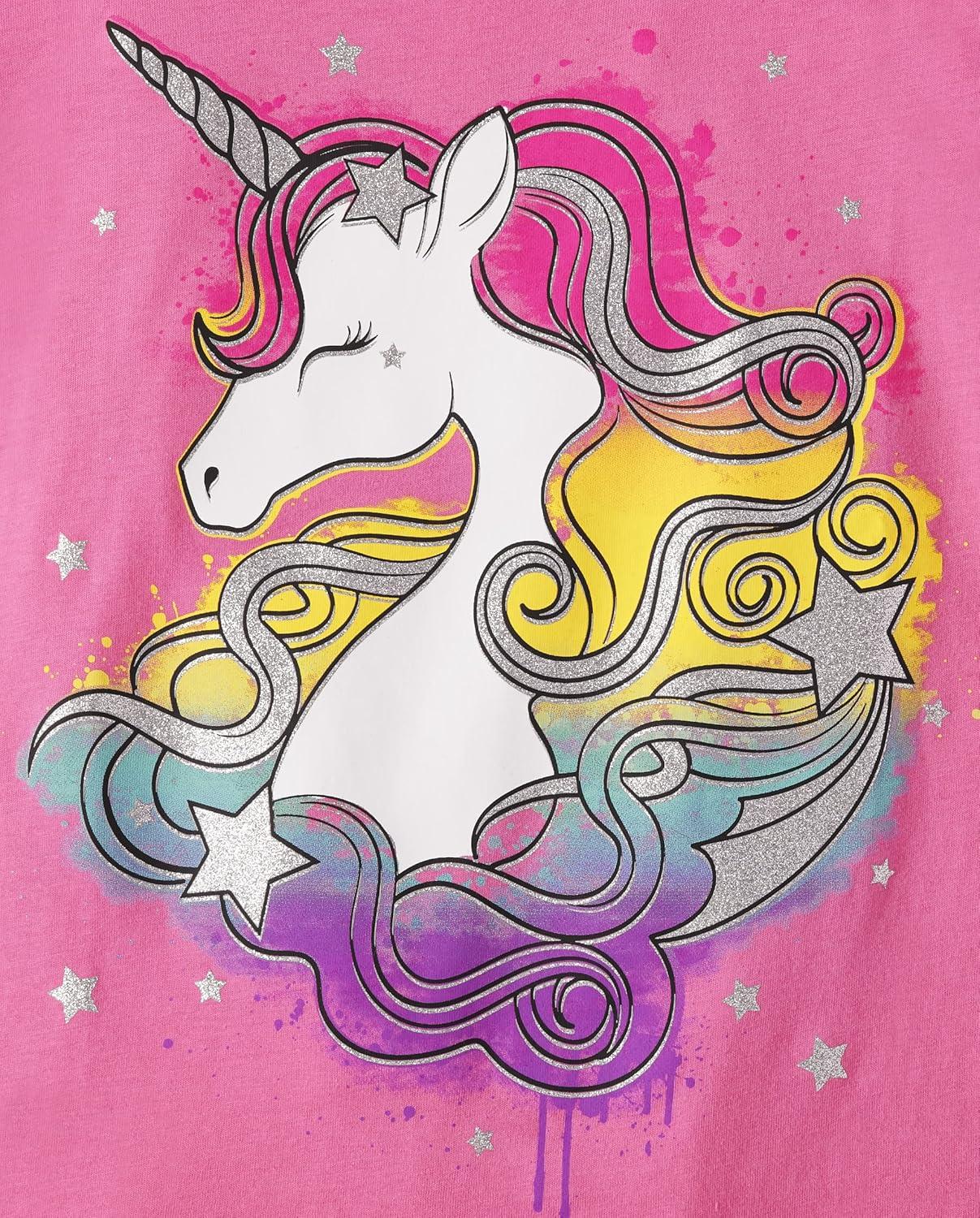 The Children’s Place Girls Unicorns,Butterfly Short Sleeve Graphic T-Shirts,3 Pack(Dolphins/Unicorn/Drink)