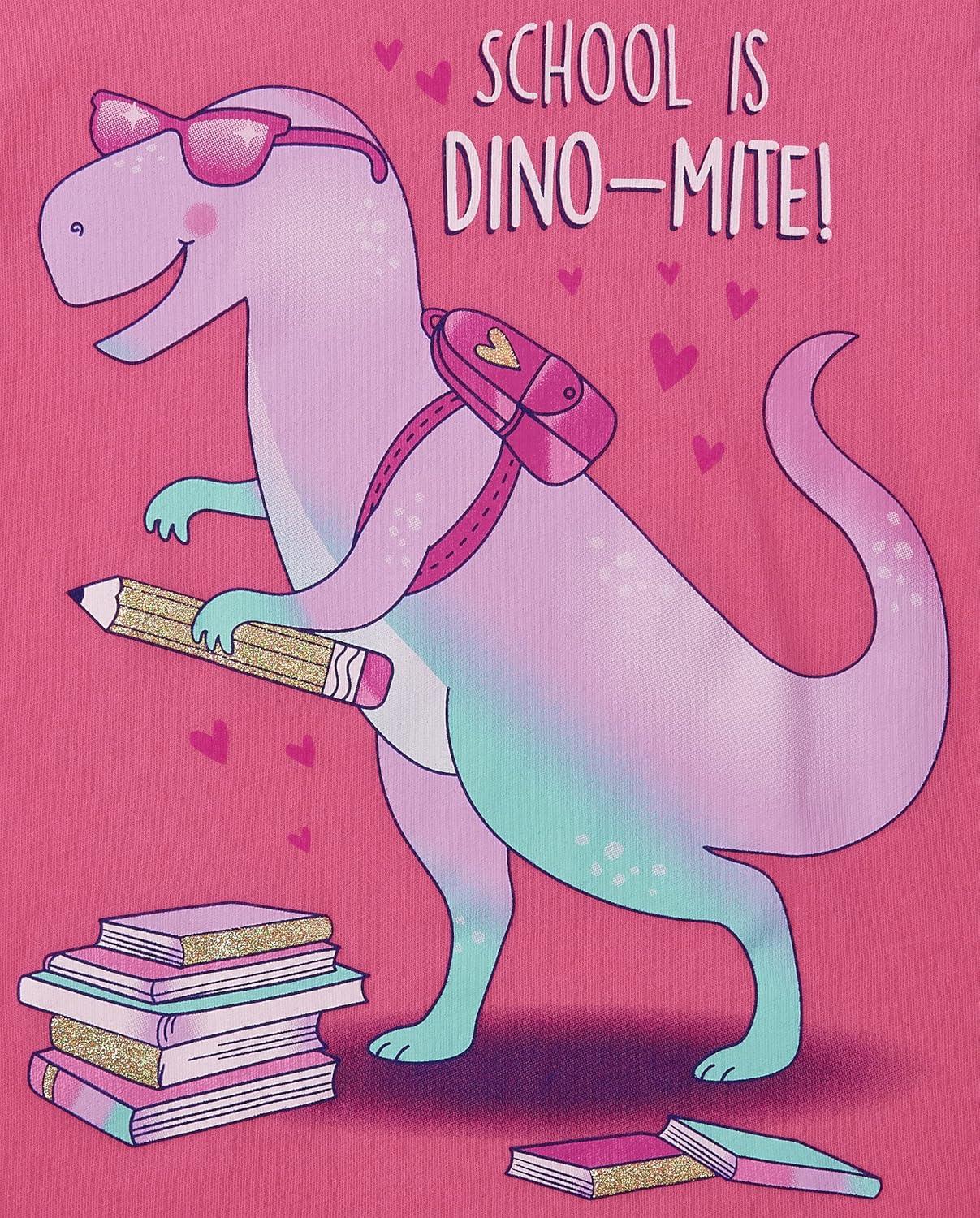 The Children’s Place Girls School Days Short Sleeve Graphic T-Shirts,multipacks(Kindergarten Cutie/School Dino Mite)