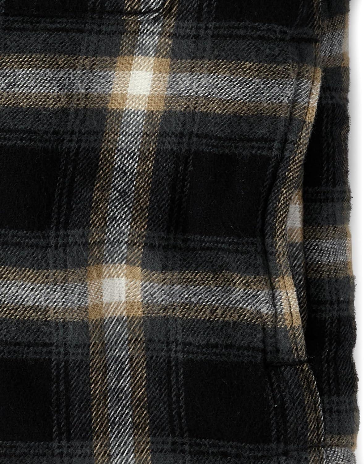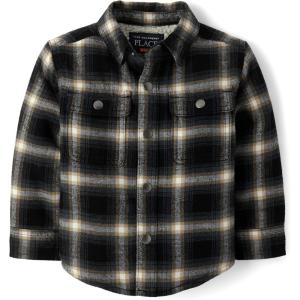 The Children’s Place Baby Boys’ and Toddler Cozy Sherpa Lined Shacket(Black Plaid)