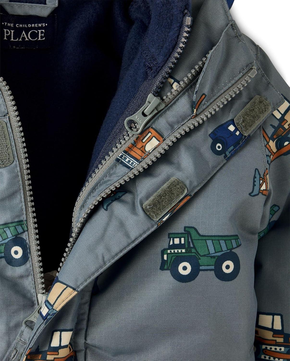 The Children’s Place Baby Boys’ and Toddler Heavy 3 in 1 Winter Jacket, Wind Water-Resistant Shell, Fleece Inner(Dino Black)