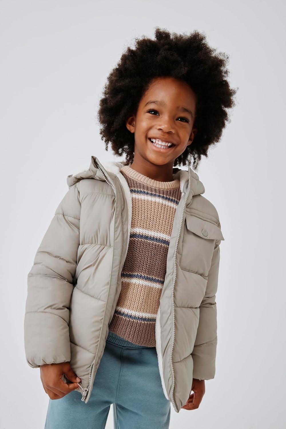 The Children’s Place baby-boys And Toddler Water and Wind Resistant Hooded Zip Front Puffer Jacket, Faux Fur Lined(Chinchilla)