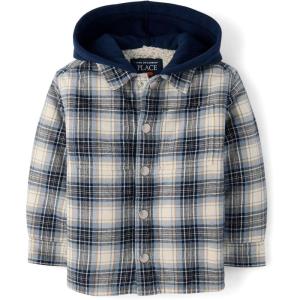 The Children’s Place Baby Boys’ and Toddler Long Sleeve Hooded Shacket(Stoneybrook Plaid)