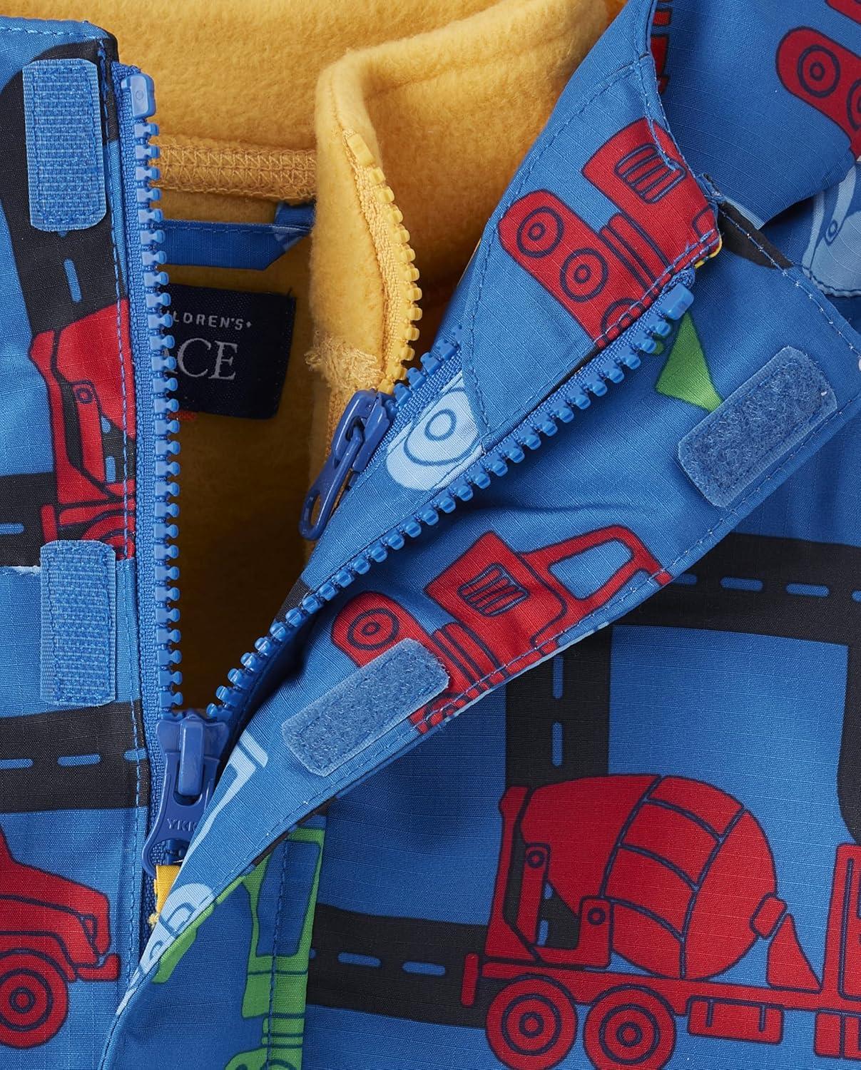 The Children’s Place Baby Boys’ and Toddler Heavy 3 in 1 Winter Jacket, Wind Water-Resistant Shell, Fleece Inner(Blue Construction Trucks)