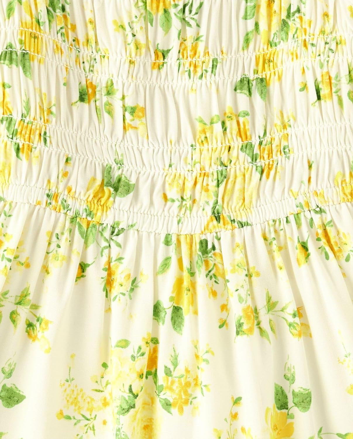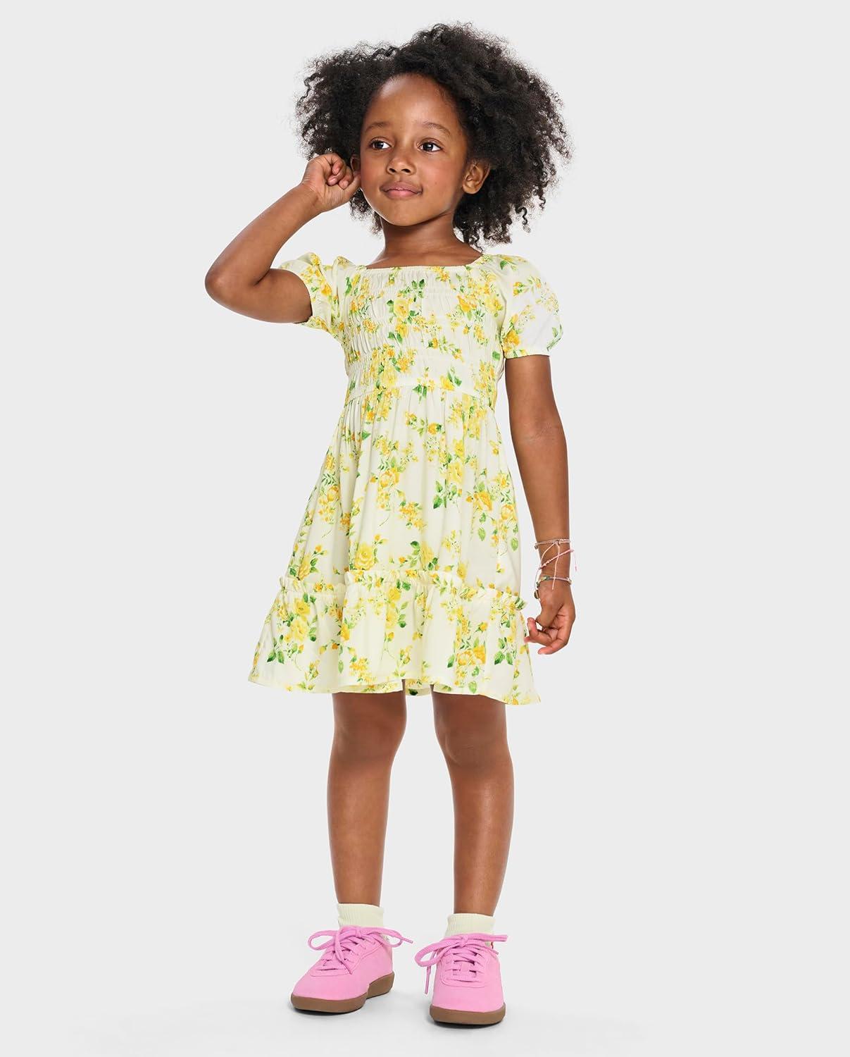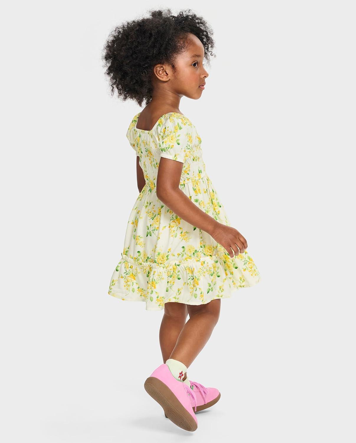 The Children’s Place Baby Girls’ and Toddler Short Sleeve Casual Dresses(Smocked Yellow Floral)