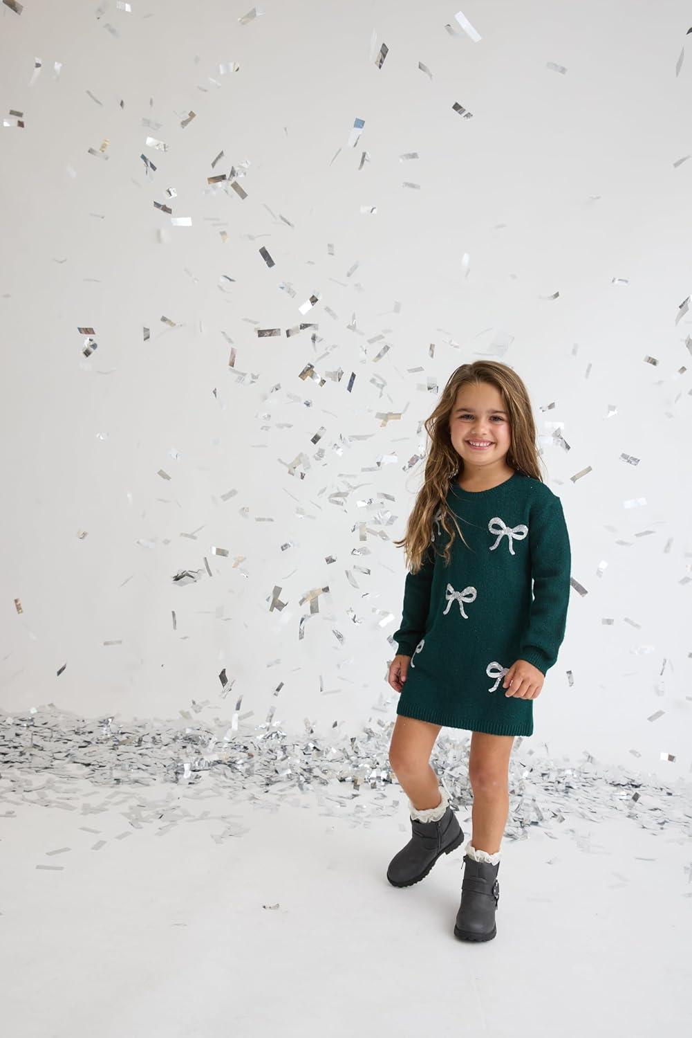 The Children’s Place Baby and Toddler Girls’ Long Sleeve Sweater Dress(Green Bows)