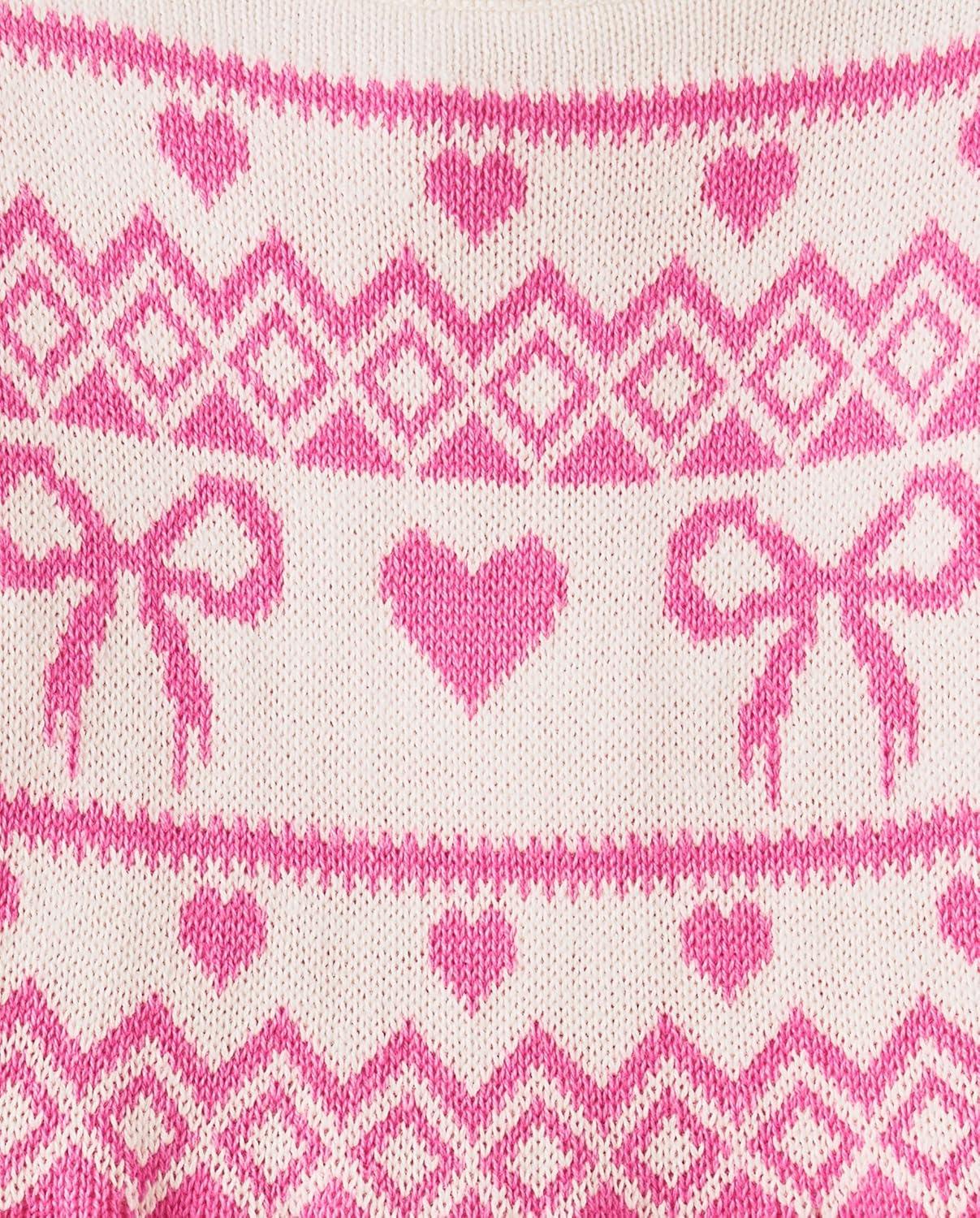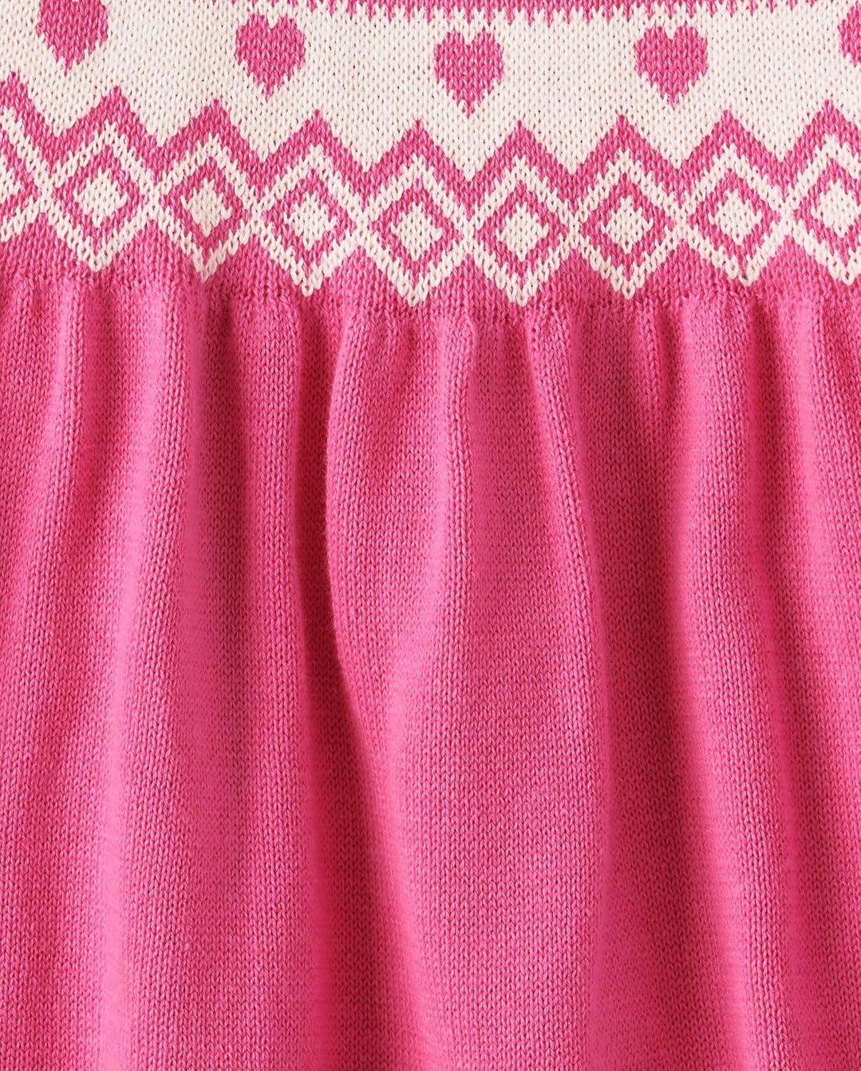 The Children’s Place Baby and Toddler Girls’ Long Sleeve Sweater Dress(Pink Fairisle)