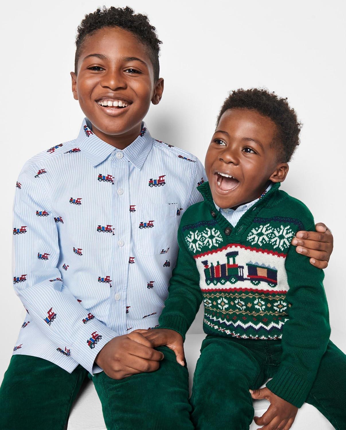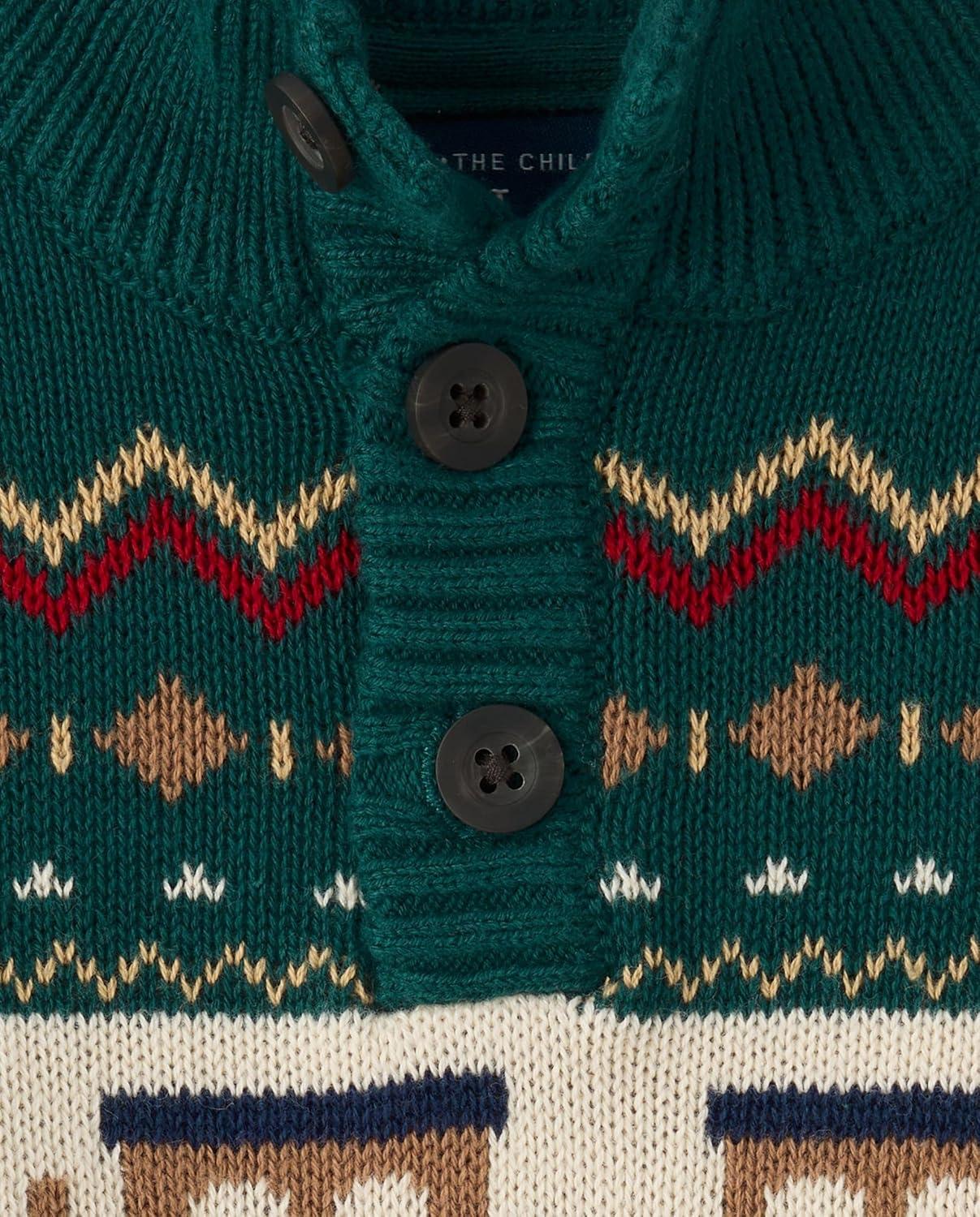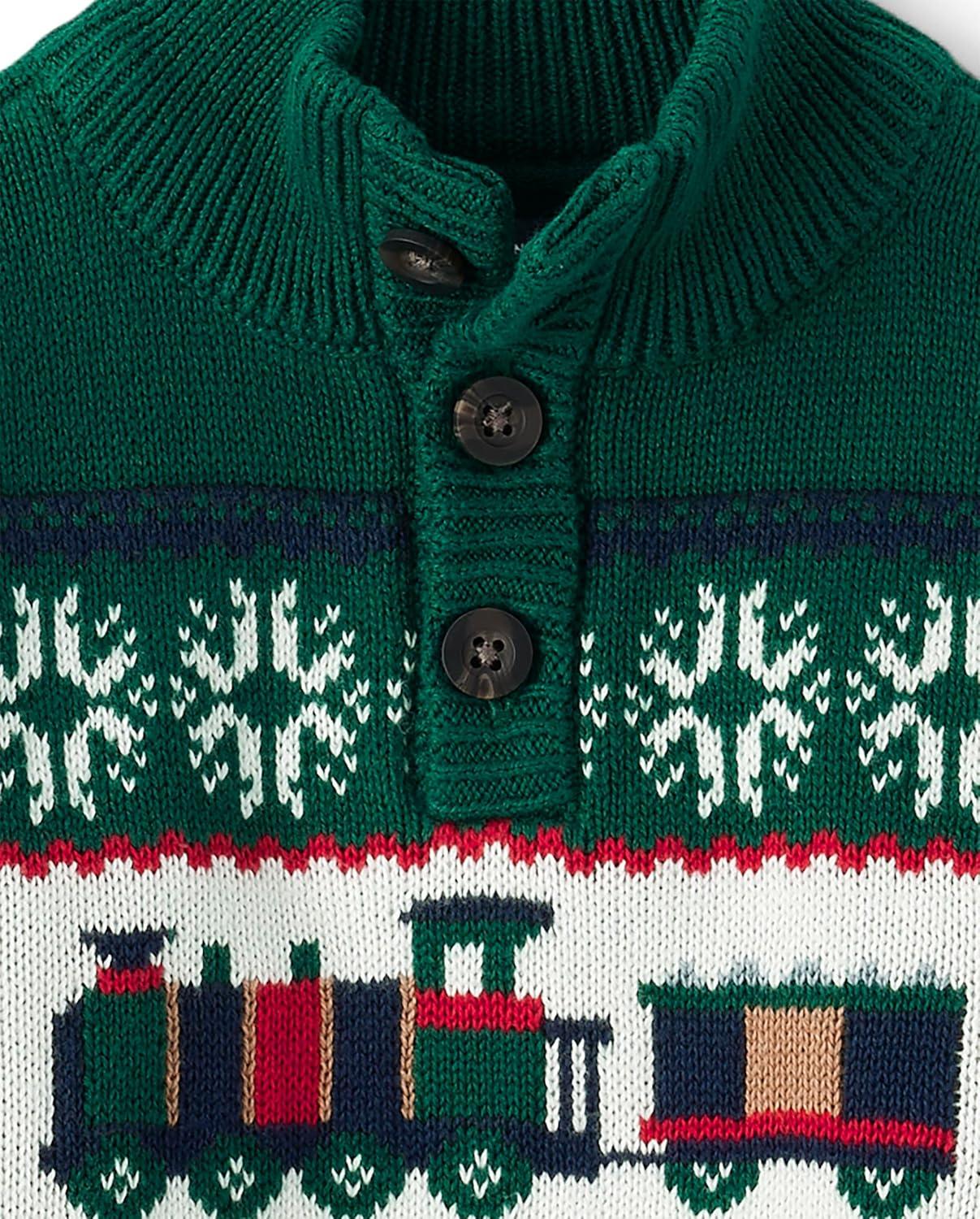 The Children’s Place Baby Boys’ and Toddler Long Sleeve Mock Neck Pullover Sweater(Green Train Mock Neck)