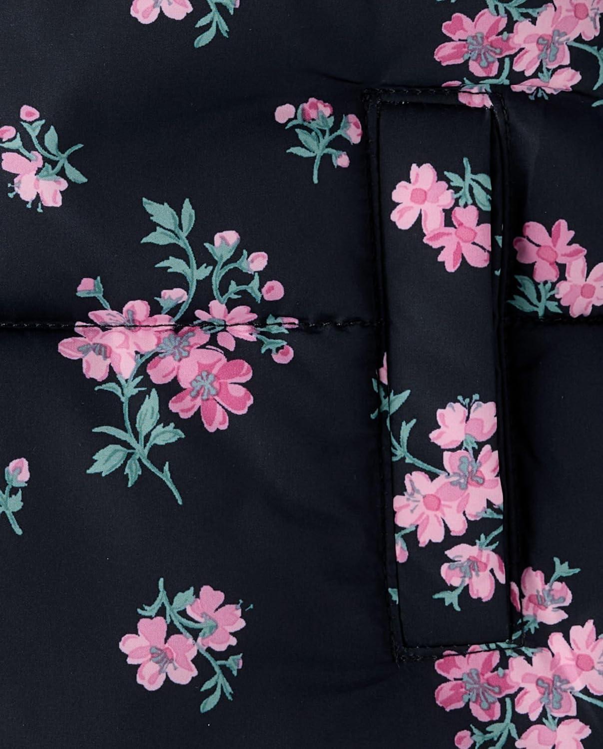The Children’s Place Baby and Toddler Girls’ Medium Weight Wind-Resistant, Water-Resistant Puffer Jacket(Black Floral)