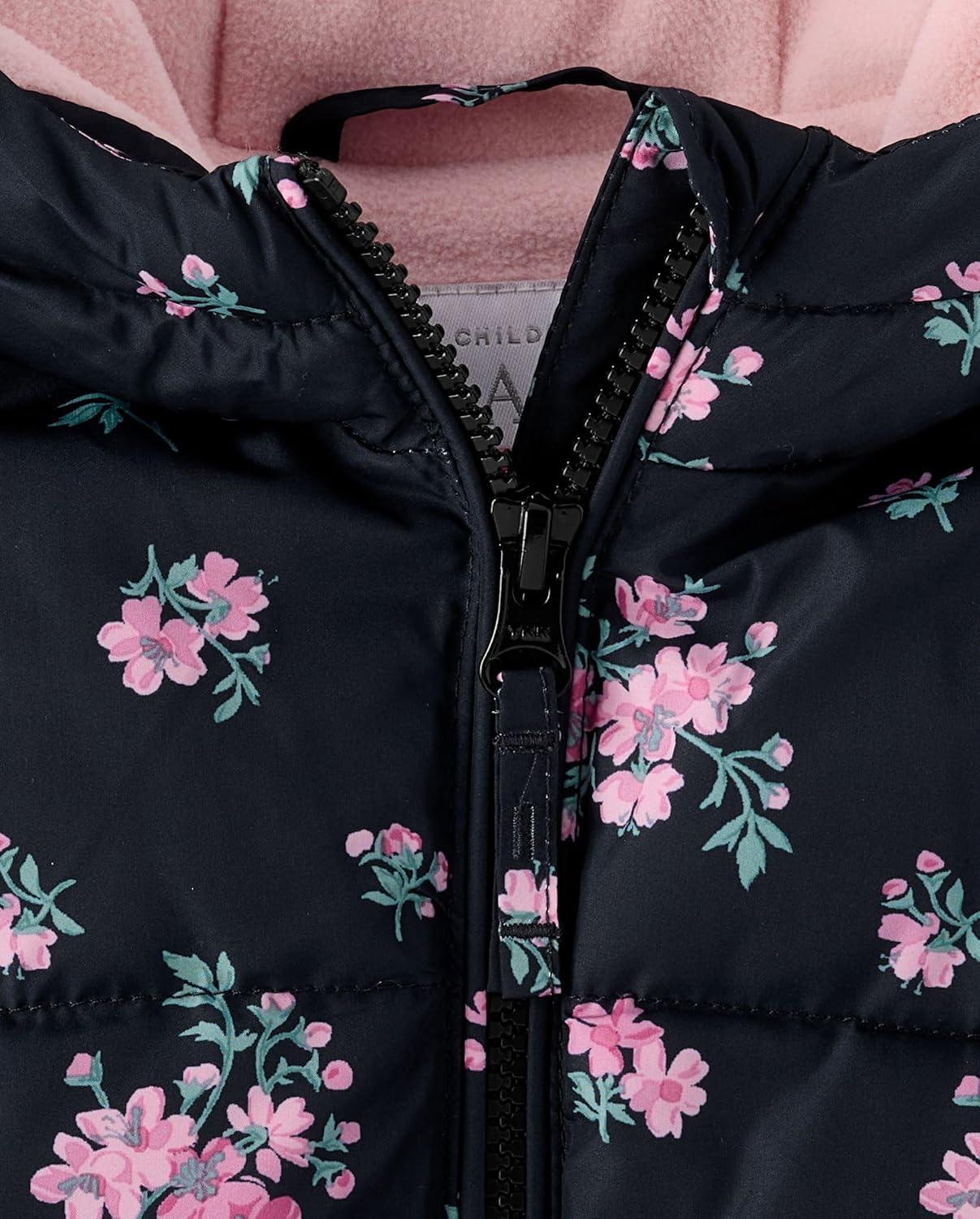 The Children’s Place Baby and Toddler Girls’ Medium Weight Wind-Resistant, Water-Resistant Puffer Jacket(Mauve Floral)