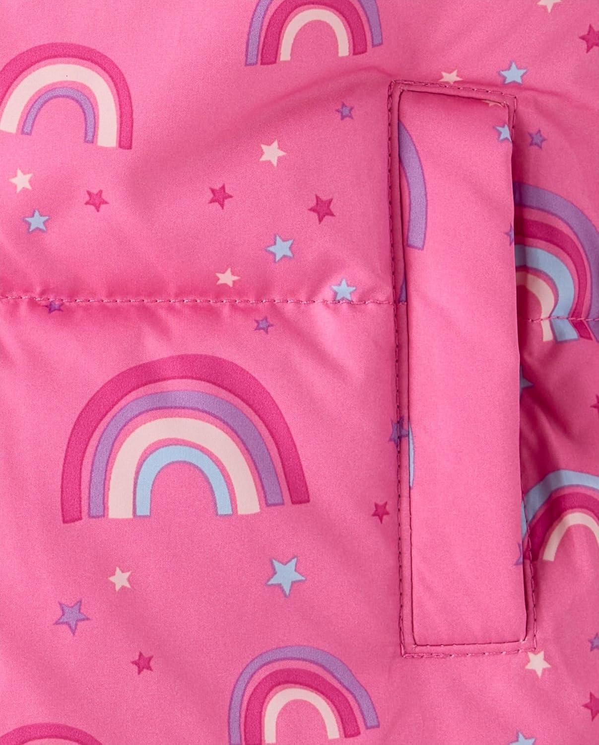 The Children’s Place Baby and Toddler Girls’ Medium Weight Wind-Resistant, Water-Resistant Puffer Jacket(Jazzberry Rainbows)