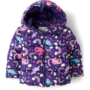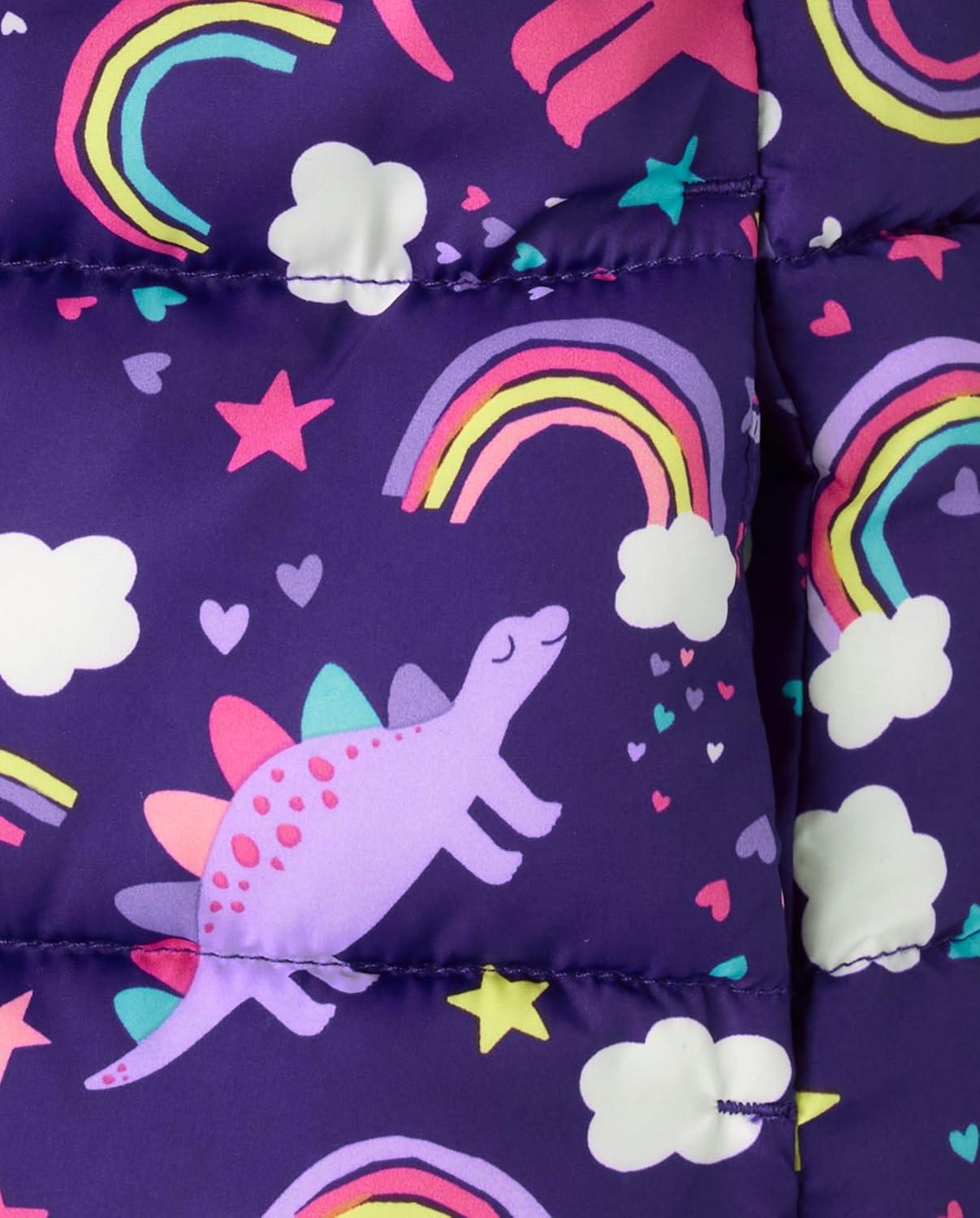 The Children’s Place Baby and Toddler Girls’ Medium Weight Wind-Resistant, Water-Resistant Puffer Jacket(Purple Dinos)