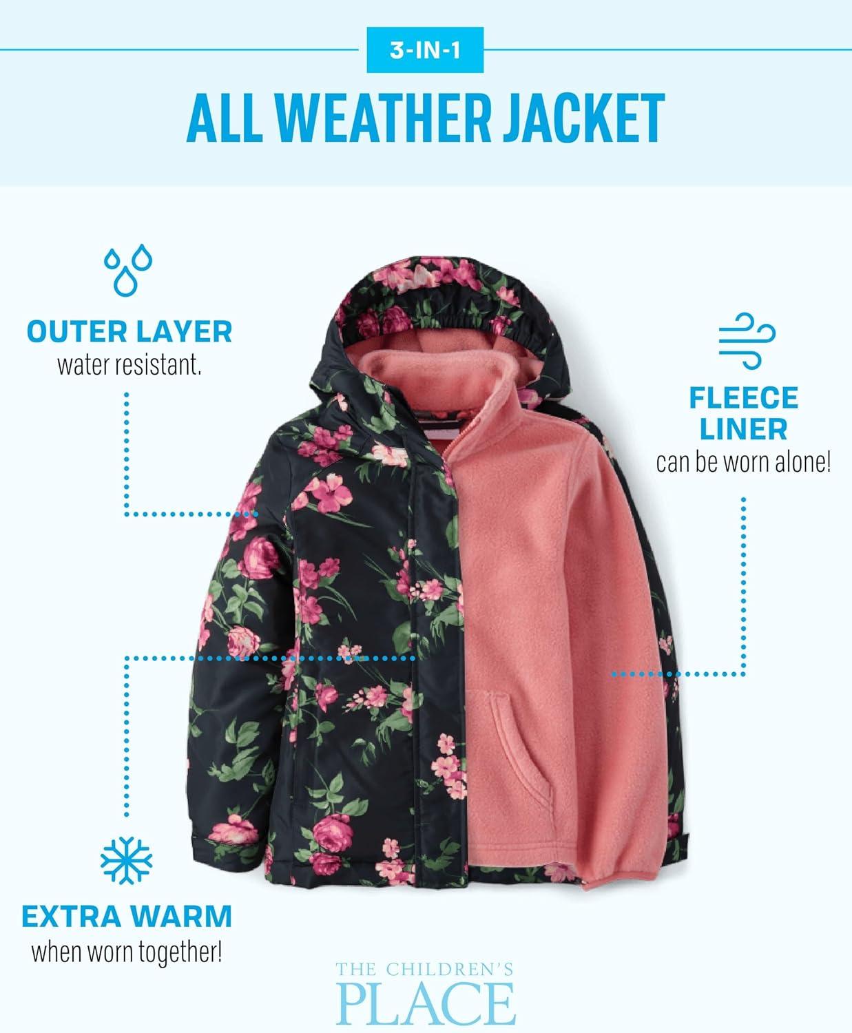 The Children’s Place Baby and Toddler Girls’ Medium Weight Wind-Resistant, Water-Resistant Puffer Jacket(Black Floral)